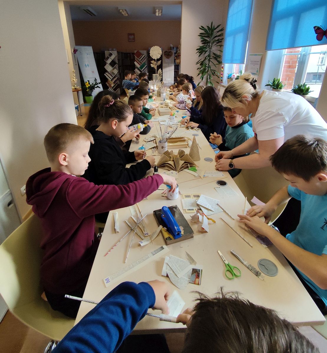 Dużym zainteresowaniem cieszył się również warsztat recyklingowy, podczas którego uczestnicy tworzyli kreatywne prace z nieużywanych książek, udowadniając, że można im nadać zupełnie nowe, ekologiczne zastosowanie.