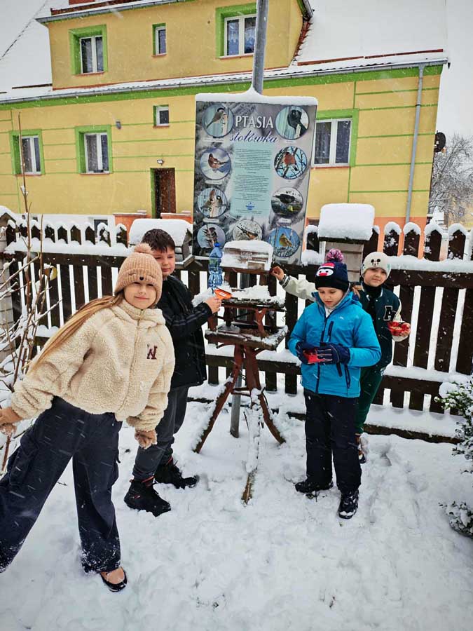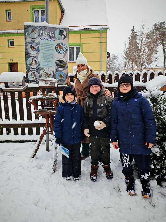 Zapraszamy wszystkich skrzydlatych gości – obowiązuje kultura, pierwszeństwo mają wróble, kosy, sikorki i gile. Miłego ćwierkania przy posiłku!