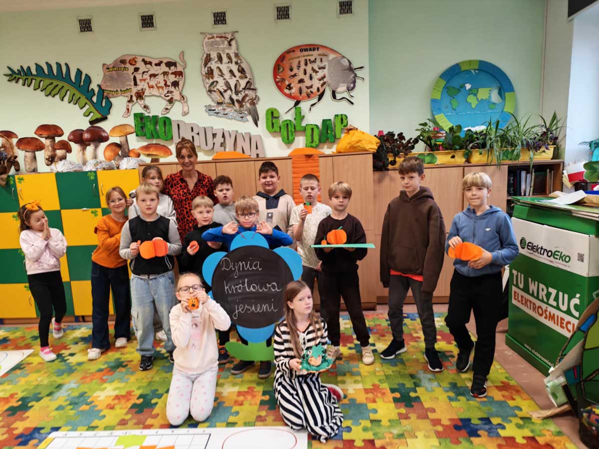 Rozmawialiśmy też o znaczeniu dyni w kuchni. Dzielnie wspierała nas w działaniach pani Edyta Izbicka – bibliotekarka szkolna. Dziękujemy.
