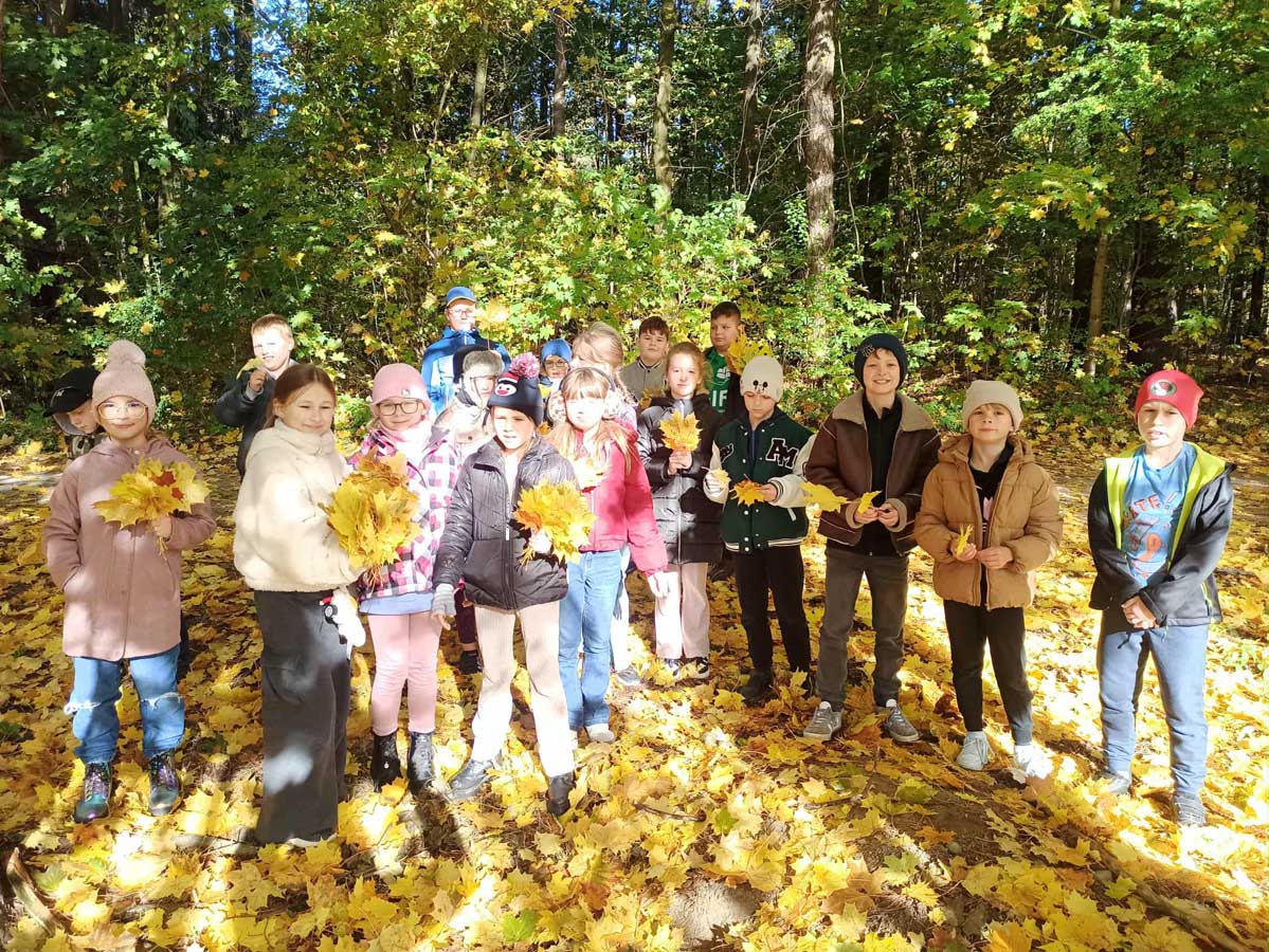Z tej inspiracji naturalnie przeszliśmy do Dnia Liści. Spacer zaowocował koszem zebranych tajemniczych kształtów, które wykorzystaliśmy w jesiennych kompozycjach oraz dekoracjach. Listki zainspirowały nas też do tworzenia własnych zielników, a wszystkie prace twórcze wzięły udział w szkolnych, powiatowych i gminnych konkurach. Znamy już pierwszych laureatów konkursów z naszej klasy.