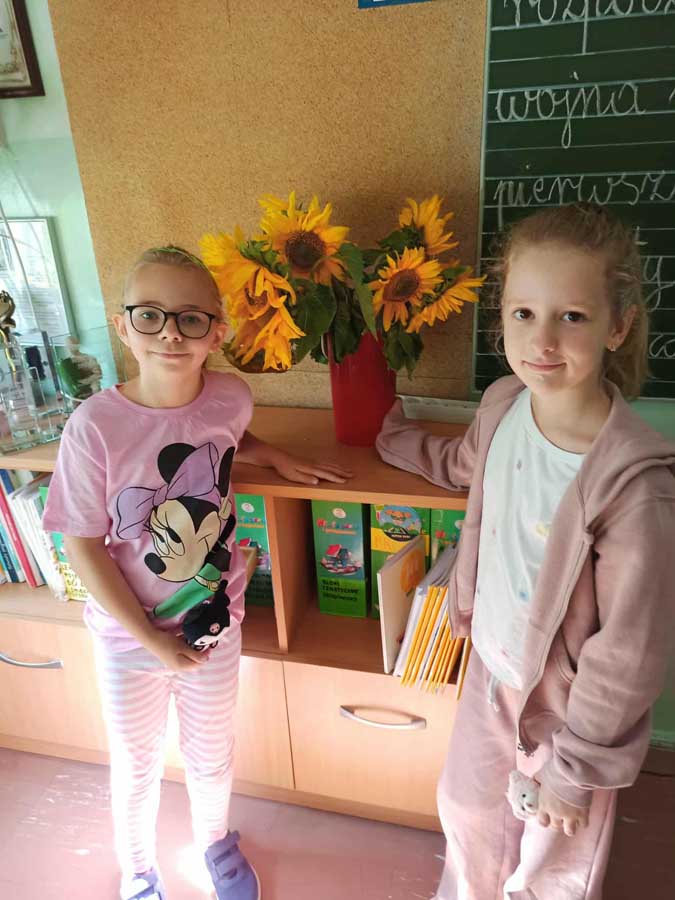 W Dniu Słonecznika uczyliśmy się tworzyć notatki, ćwiczyliśmy opisywanie tej pięknej rośliny i notowanie swoich spostrzeżeń w zeszytach przyrodniczych. O estetykę okien zadbały Oliwka wraz z mamą Magdaleną Sidor, a o naturalne dary przyniesione z pól zadbali nasi klasowi rolnicy: Filip, Antoś, Olek i Wojtek wraz z rodzicami.