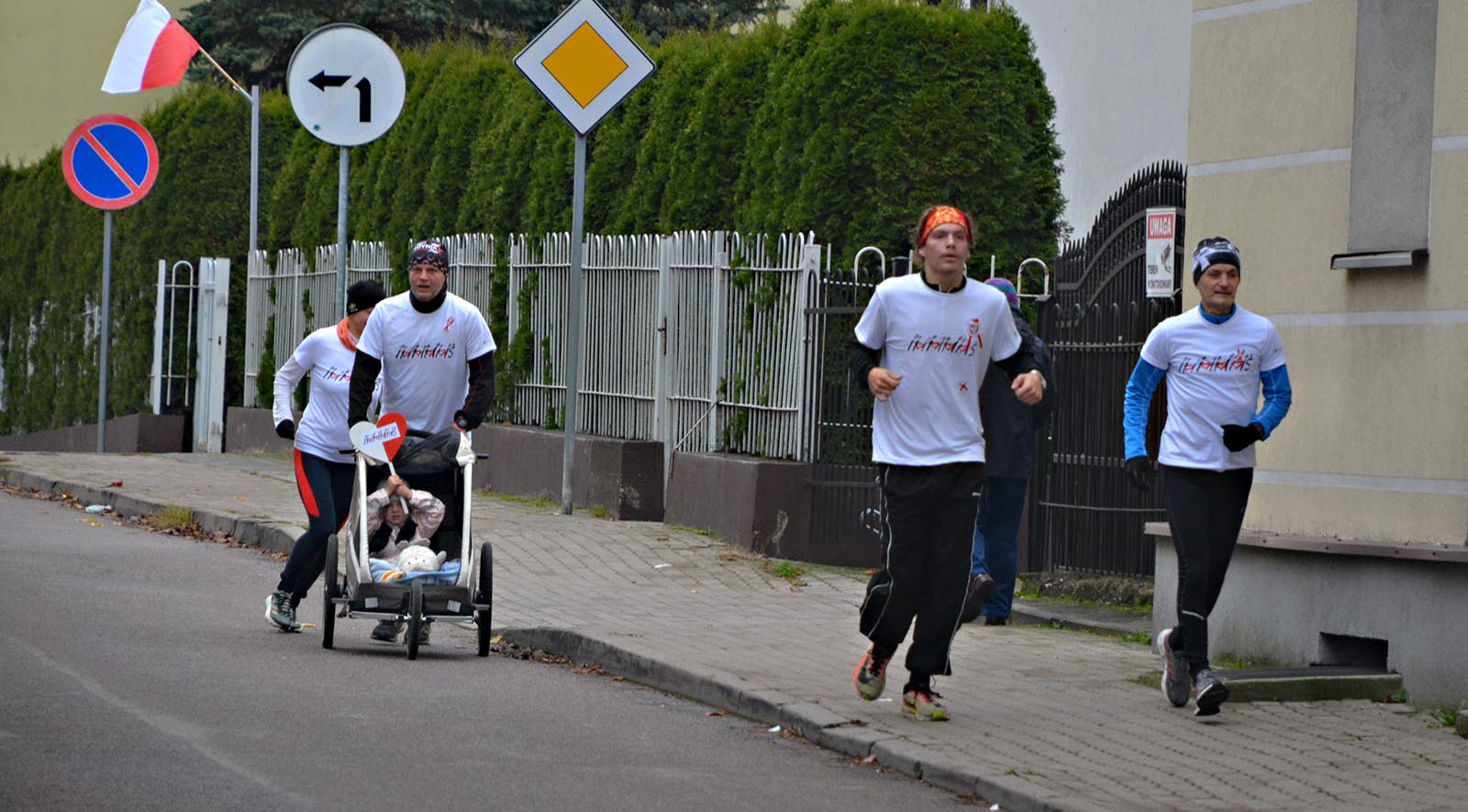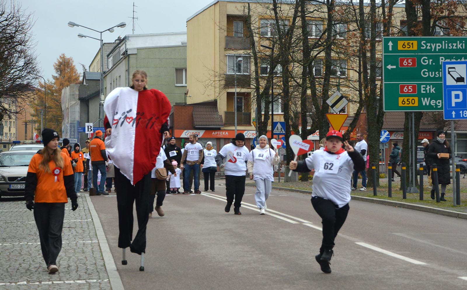 Właściwie to jedenastkowy i… piętnasty. Zainicjowany przez Dorotę Łasicę i wpisany w gołdapską tradycję obchodów Święta Niepodległości. Dziś impreza rozpoczęła się inaczej niż w latach poprzednich, bo od odtańczenia poloneza przez uczestników biegu.