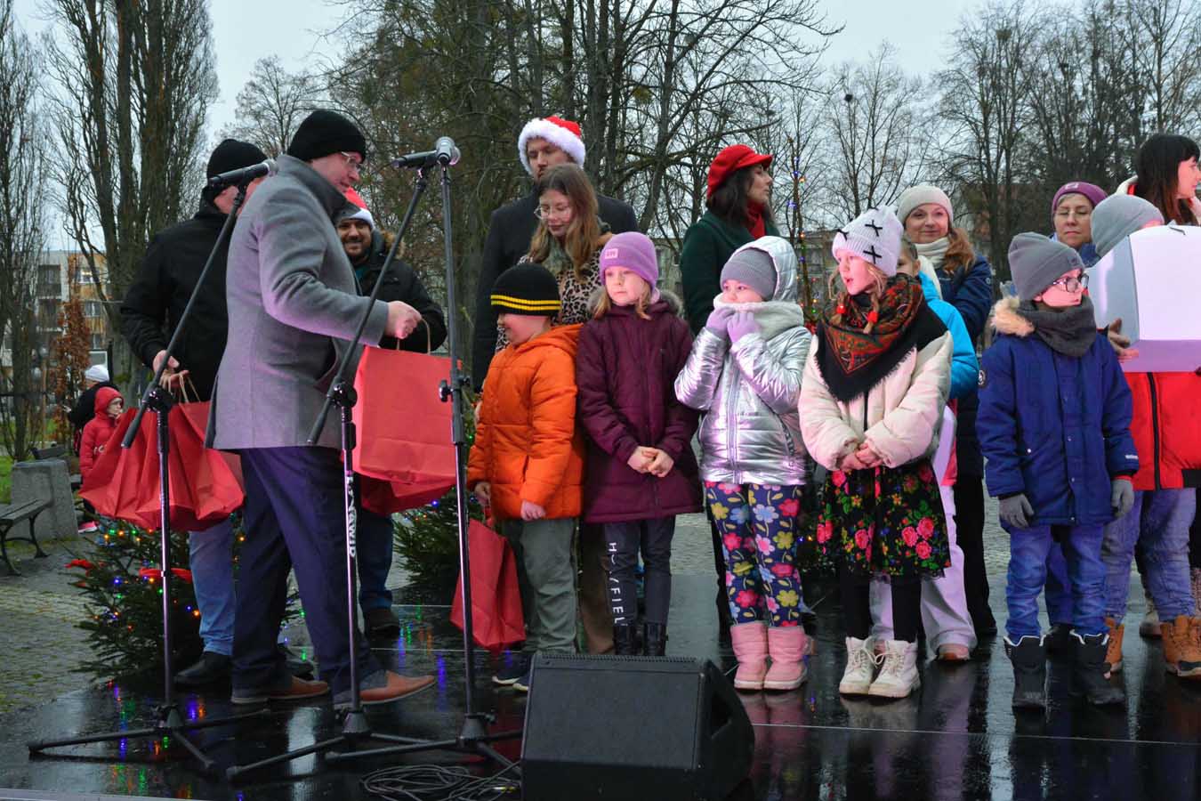 Sobotnie mikołajki, odbywały się w Parku Miejskim i Domu Kultury. Zaprezentowały się przedszkolaki i uczniowie szkół podstawowych. Były też licytacje na leczenie i rehabilitację Marcina Białousa.