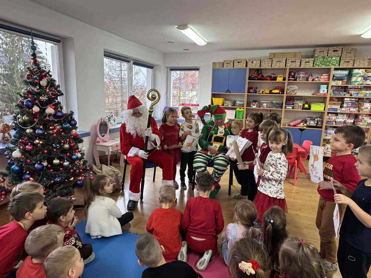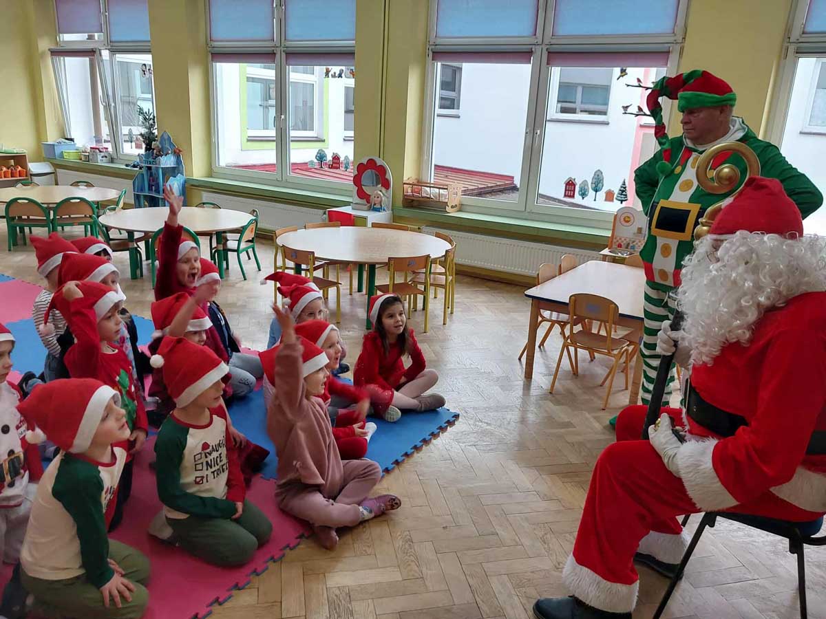 W poniedziałek w Przedszkolu Samorządowym odbyły się wyjątkowe mikołajki. Tego dnia przedszkole odwiedził Mikołaj wraz z Elfem, którzy postanowili zajrzeć do każdej sali osobno, dzięki czemu dzieci mogły spotkać się z nimi w kameralnej atmosferze.