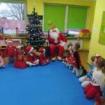 Było mnóstwo zabaw, tańców, a nawet rzucanie śnieżkami. Dzieci z radością prezentowały przygotowane piosenki i wierszyki, a Mikołaj chwalił je za odwagę i serdecznie rozmawiał z każdym przedszkolakiem. Najwięcej emocji wzbudziło oczywiście wręczanie prezentów dla każdego dziecka.