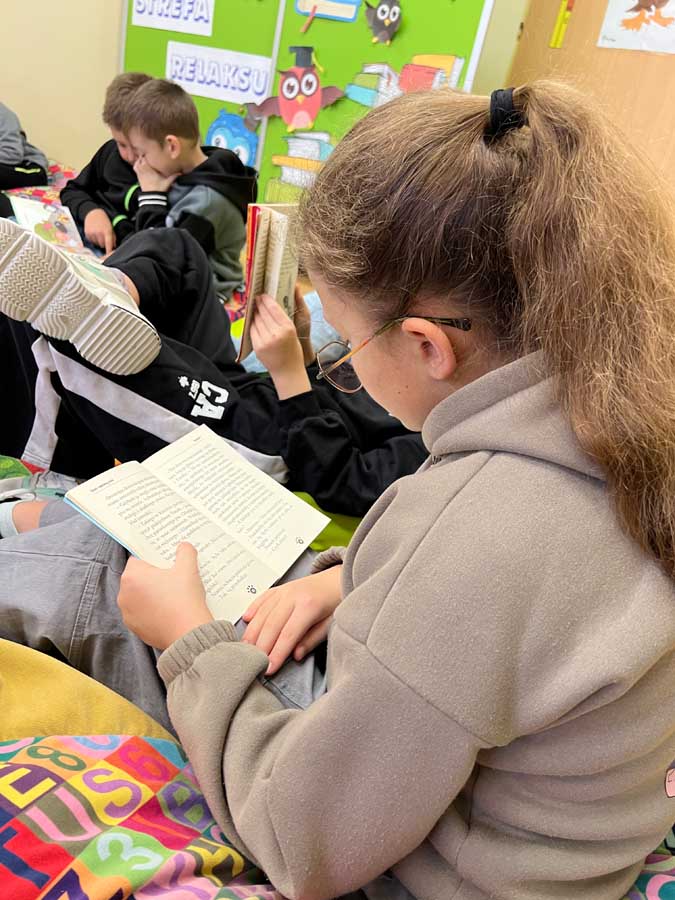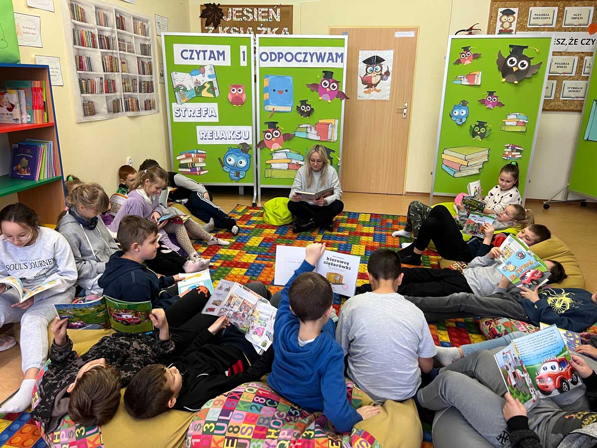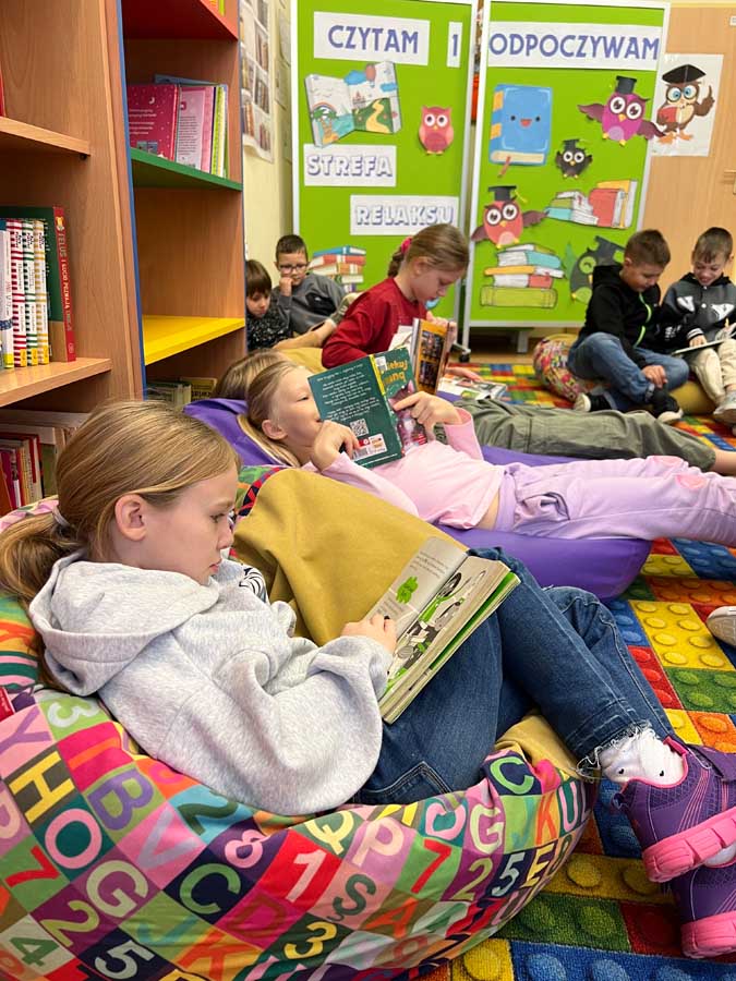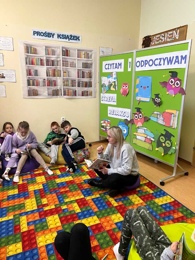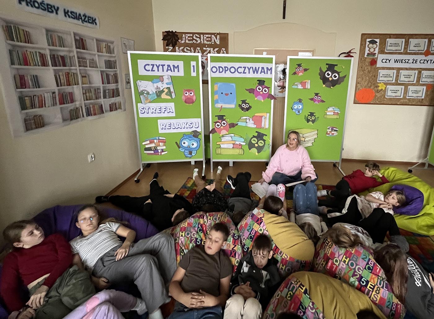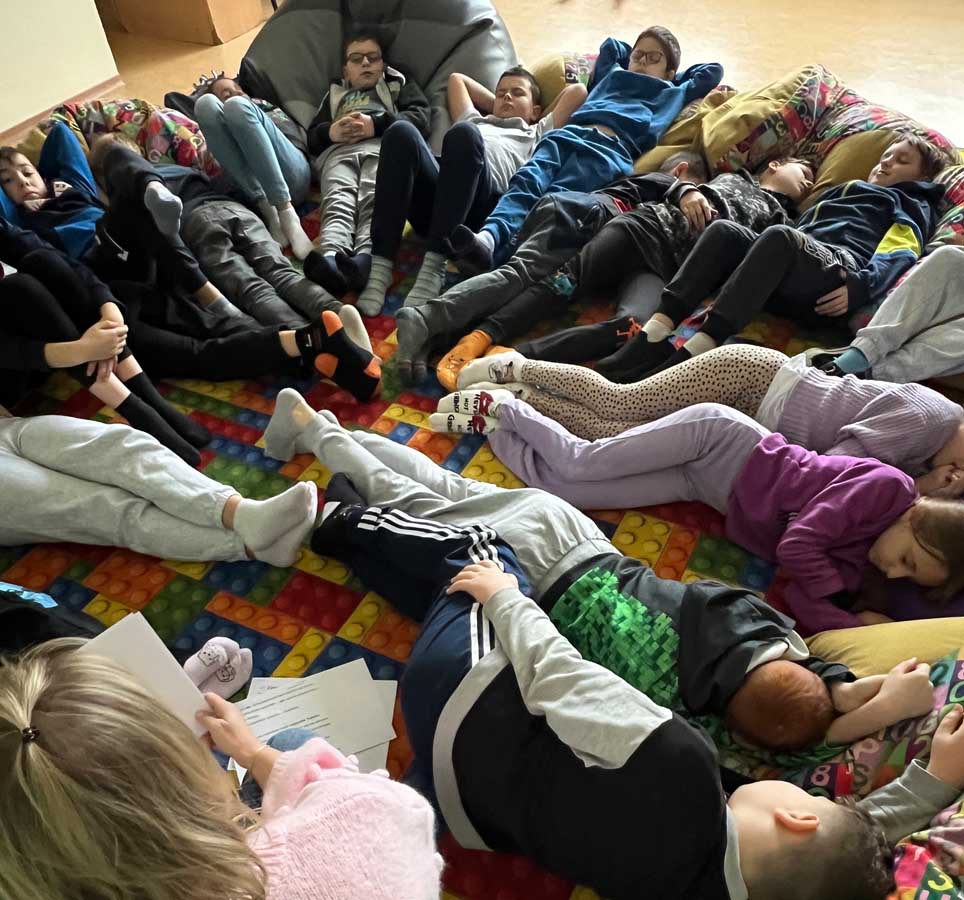 W bibliotece Szkoły Podstawowej nr 5 odbyły się wyjątkowe zajęcia, które miały na celu wprowadzić uczestników w świat relaksu, wyobraźni i twórczego myślenia. Spotkanie połączyło elementy wyciszenia, literatury oraz aktywności plastycznej, tworząc przyjazną przestrzeń do odpoczynku i rozwijania kreatywności.