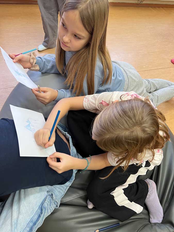 Po części słuchowej uczniowie odpowiadali na pytania związane z bajką. Chętnie dzielili się swoimi spostrzeżeniami i wrażeniami, a rozmowa pomogła im lepiej zrozumieć przesłanie opowieści. Na zakończenie narysowały swoje ulubione miejsca odpoczynku.