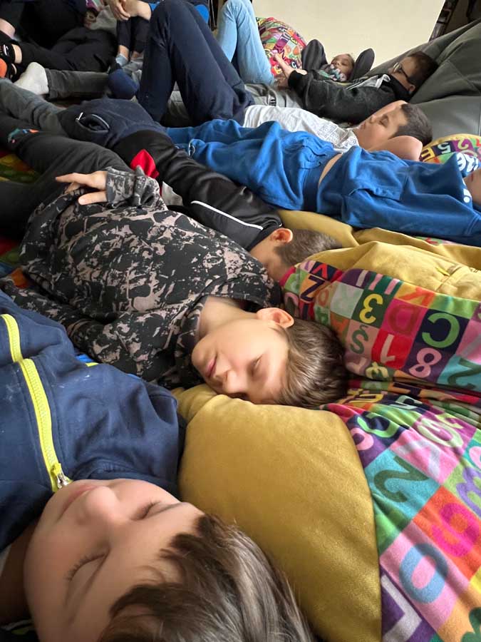 Dzieci wysłuchały bajkę relaksacyjną, która wprowadziła je w świat łagodnych dźwięków, pięknych obrazów i magicznych miejsc. Opowieść nie tylko pobudziła wyobraźnię, ale również pozwoliła wszystkim jeszcze głębiej zanurzyć się w spokojny nastrój zajęć.
