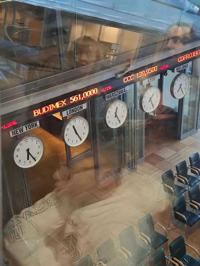 Po przybyciu do budynku GPW uczniowie uczestniczyli w zajęciach prowadzonych przez pracownika giełdy. Omówiono historię i rolę rynku kapitałowego, zasady działania giełdy oraz znaczenie notowań i indeksów. Uczniowie zobaczyli salę notowań, obserwowali aktualne dane rynkowe i zadawali pytania związane z pracą maklerów oraz analityków. Wzięli udział w zajęciach poświęconych lokowaniu kapitału.