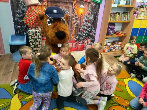 Tata w mundurze – gołdapski policjant przeprowadził lekcję bezpieczeństwa dla najmłodszych