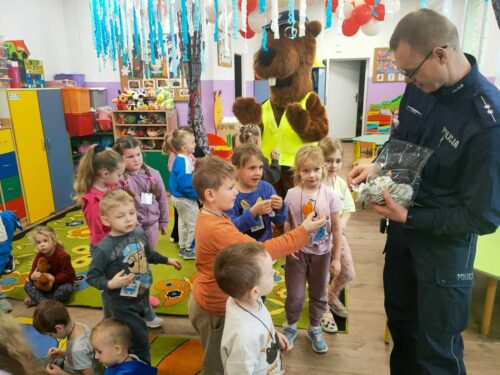 Tata w mundurze – gołdapski policjant przeprowadził lekcję bezpieczeństwa dla najmłodszych