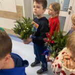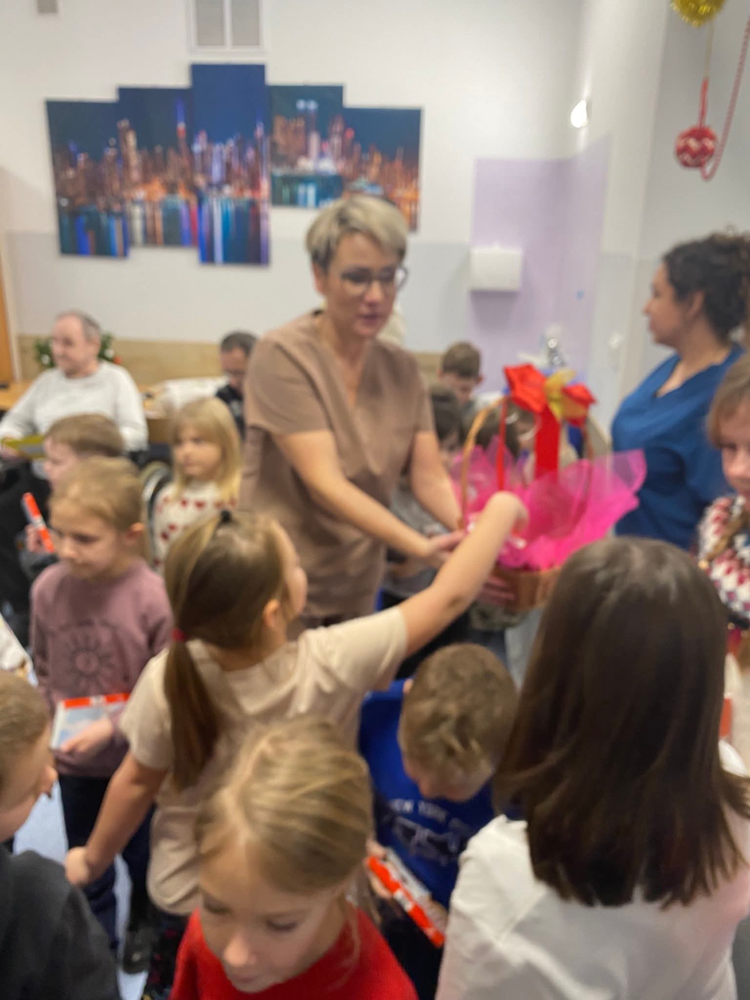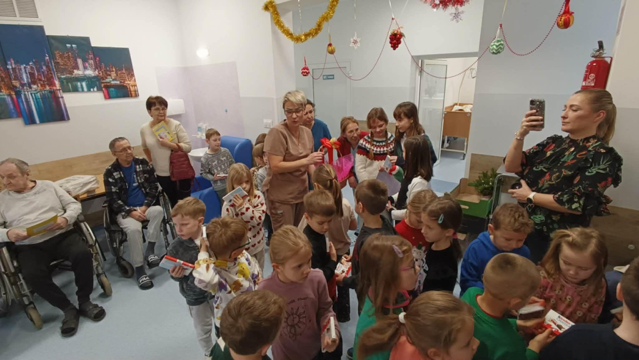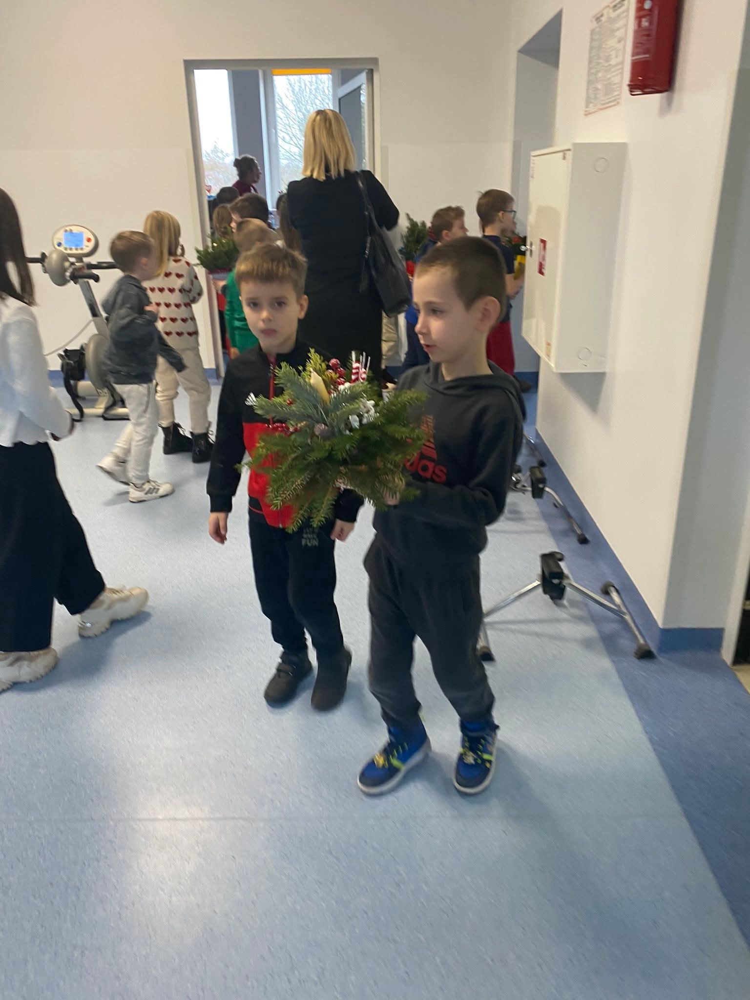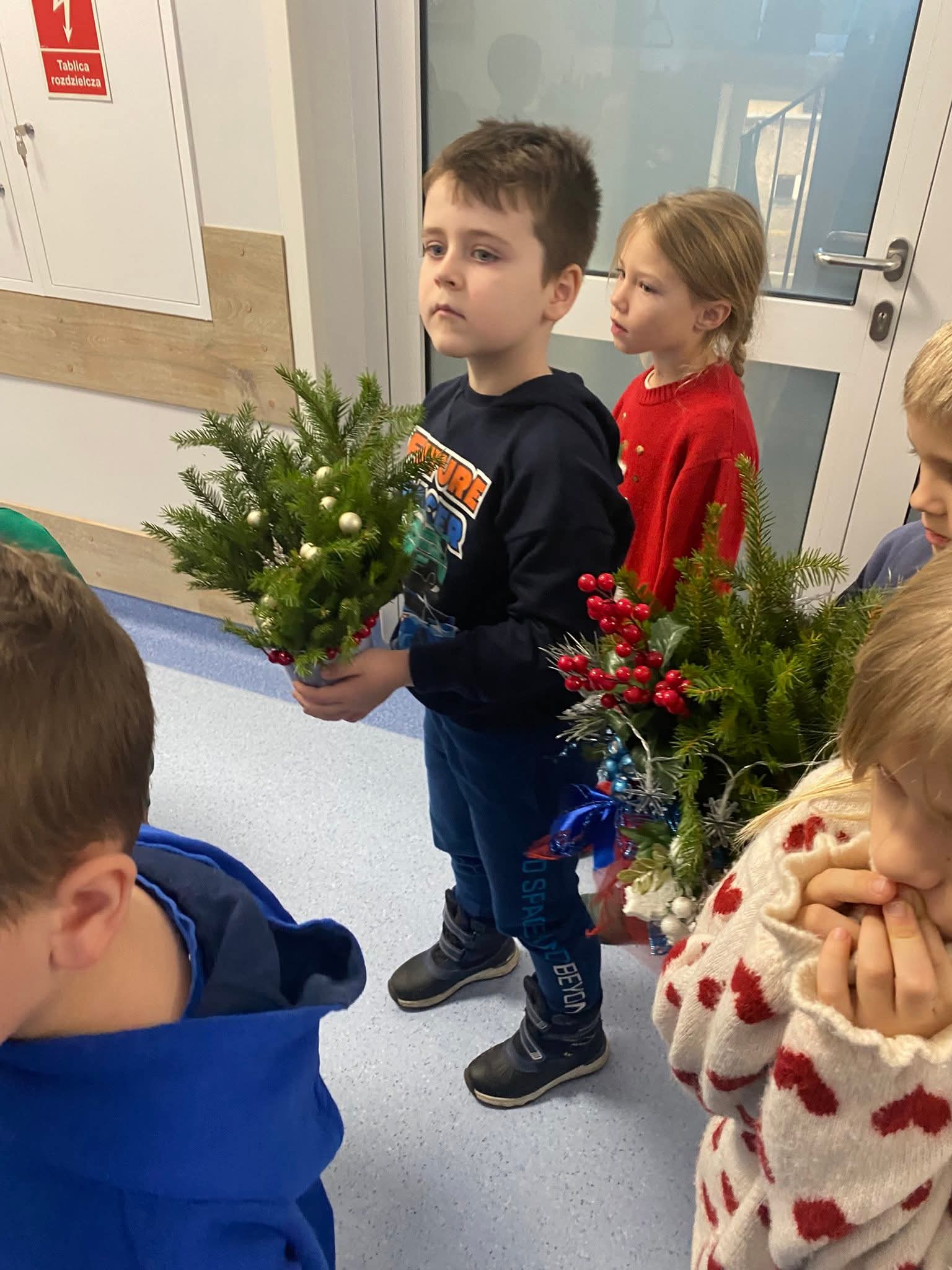Na zakończenie mali artyści wręczyli pocztówki i stroiki, dzieląc się dobrym słowem i sercem otwartym na drugiego człowieka. To była wyjątkowa lekcja empatii i wrażliwości.