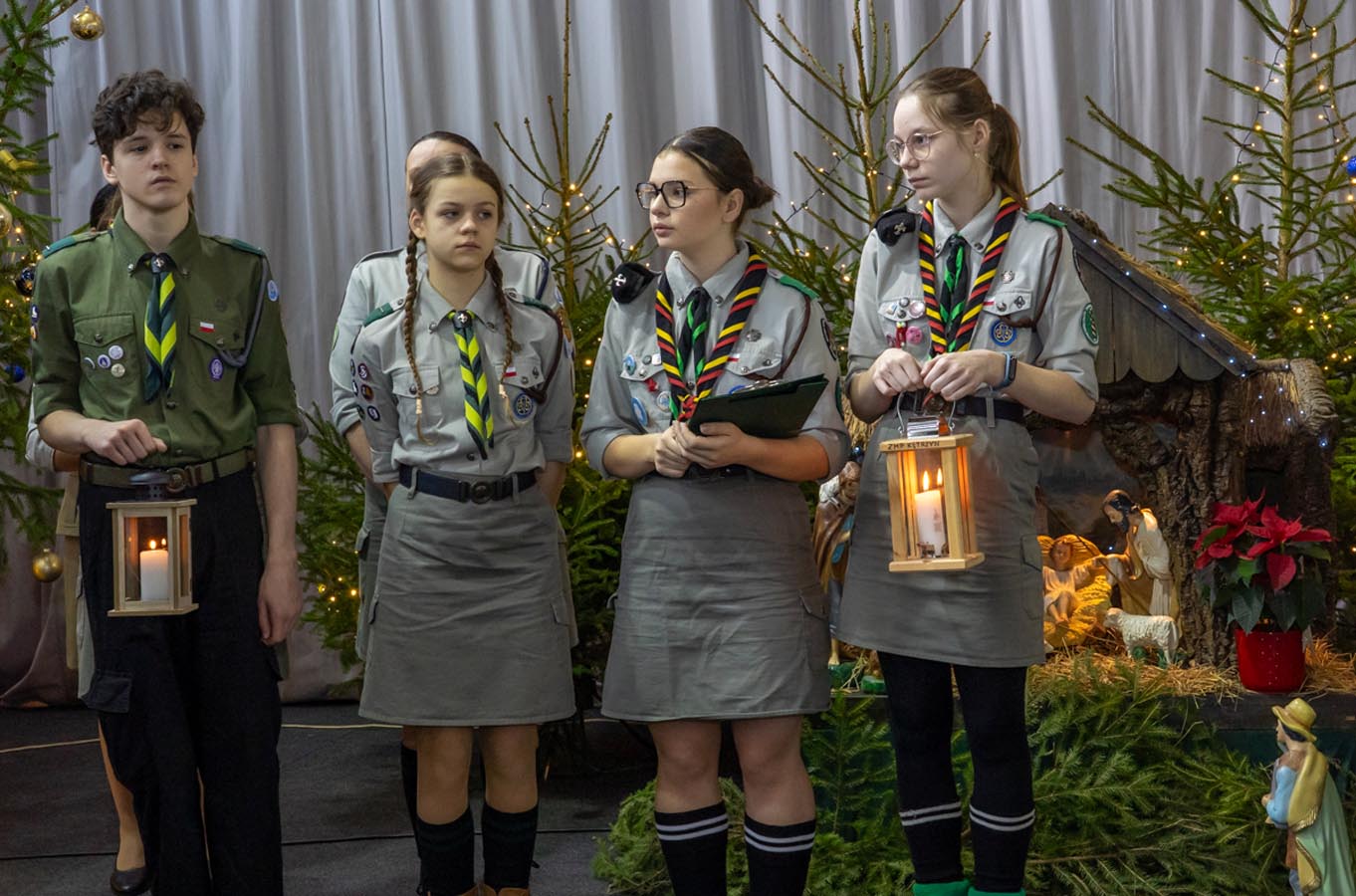 Podczas uroczystości harcerze z Kętrzyna i Bań Mazurskich przekazali Komendantowi W-MOSG gen. bryg. SG Danielowi Wojtaszkiewiczowi oraz zastępcy Komendanta CSSG płk. SG Markowi Szymańskiemu światełko Betlejemskie.