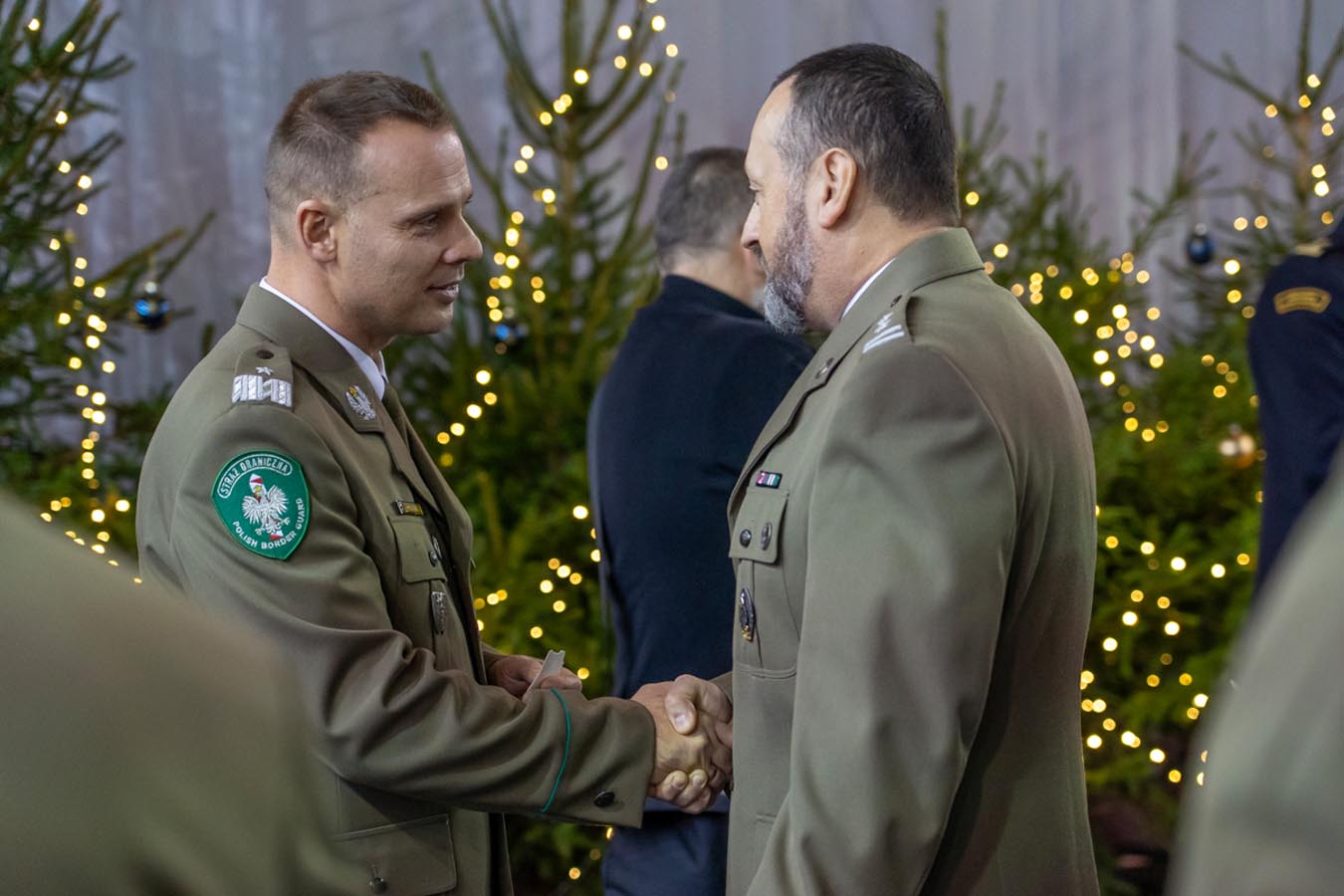 Komendant Warmińsko-Mazurskiego Oddziału Straży Granicznej gen. bryg. SG Daniel Wojtaszkiewicz podziękował wszystkim za ciężką służbę. Składając świąteczne życzenia podkreślił: „by wiara, nadzieja i miłość zagościła i rozkwitła w naszych sercach. By w naszych sercach zagościł pokój”.