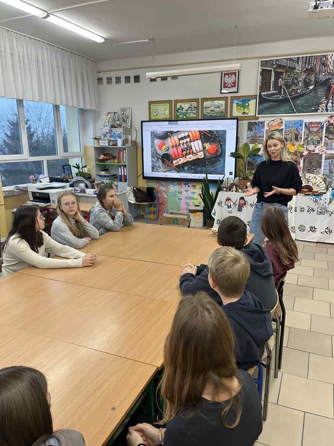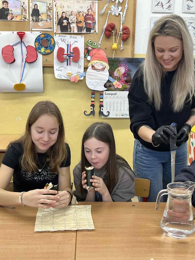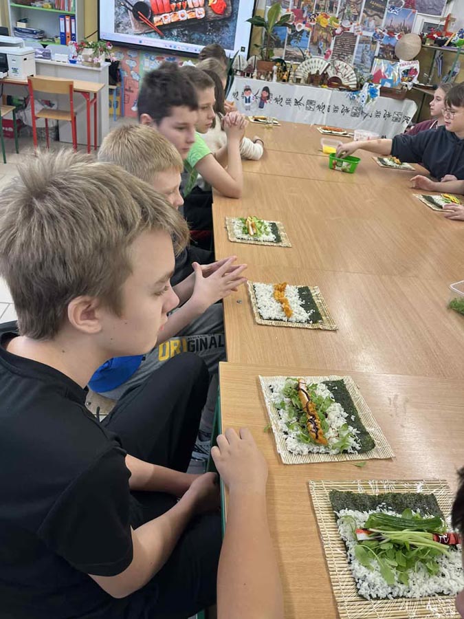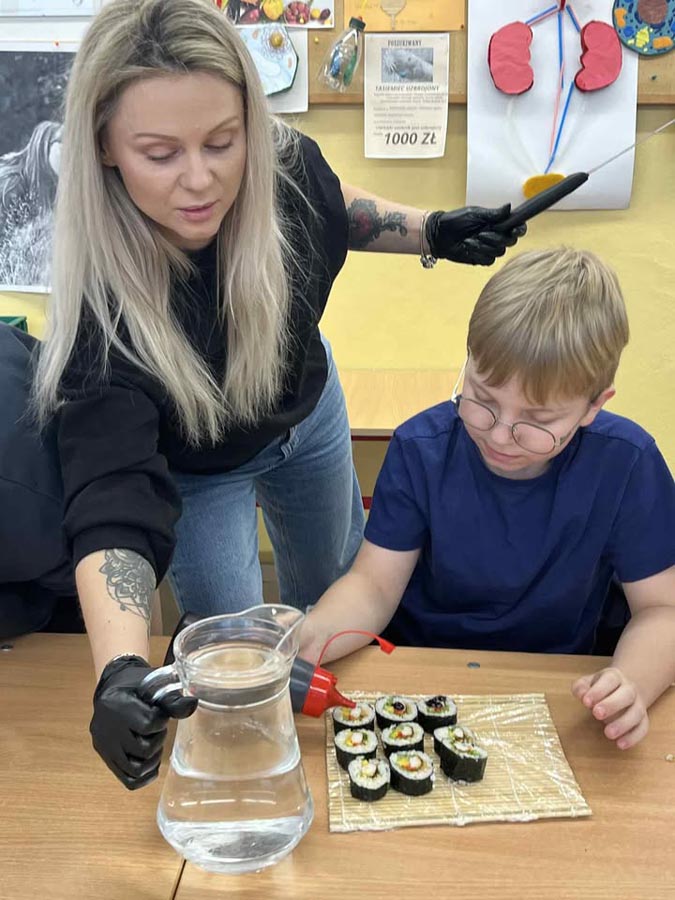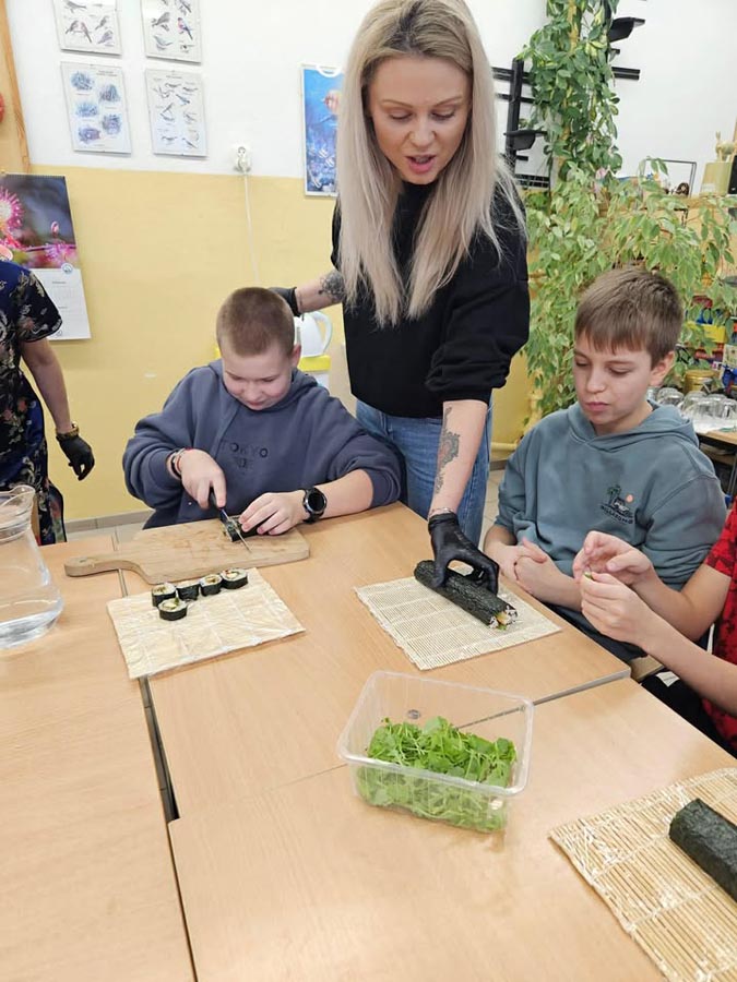Największą atrakcją okazały się warsztaty sushi dla klasy VI, prowadzone przez panią Marzenę z SushiMa . Uczniowie poznali tajniki przygotowywania sushi i samodzielnie wykonali swoje pierwsze rolki.