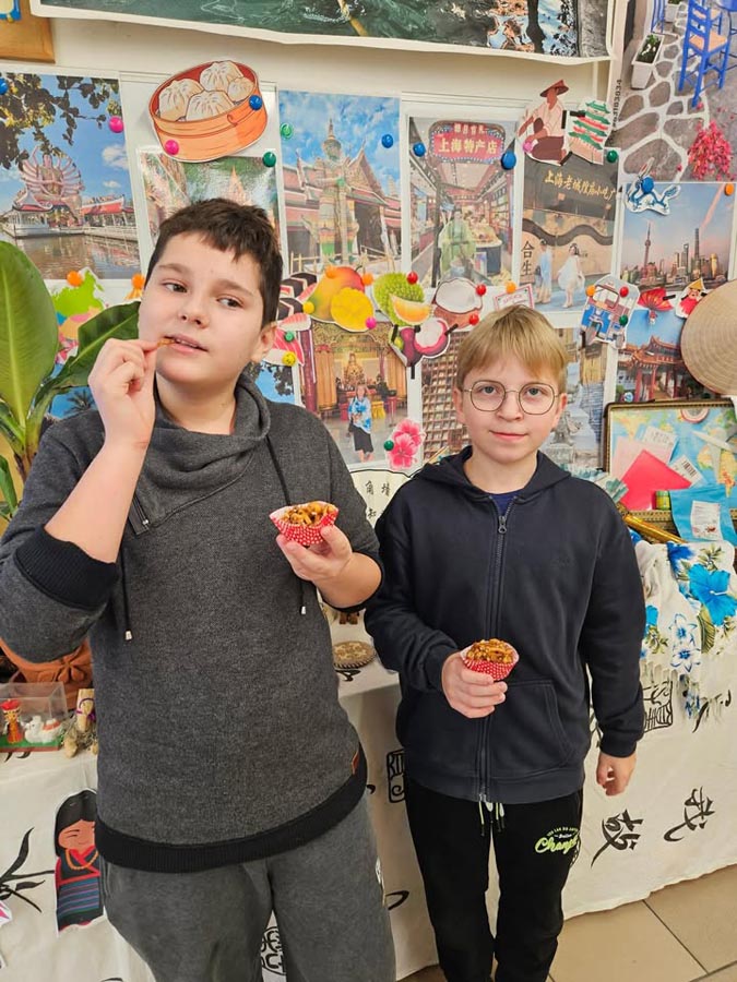 Uczniowie Szkoły Podstawowej w Dubeninkach wzięli udział w wyjątkowym projekcie przygotowanym przez panią Beatę, w ramach którego poznawali kulturę, tradycje i smaki Azji. Podczas zajęć mogli obejrzeć zdjęcia oraz pamiątki z podróży po różnych krajach, a pani Beata i pani Ksenia dzieliły się swoimi doświadczeniami, ciekawostkami i inspiracjami z wypraw.