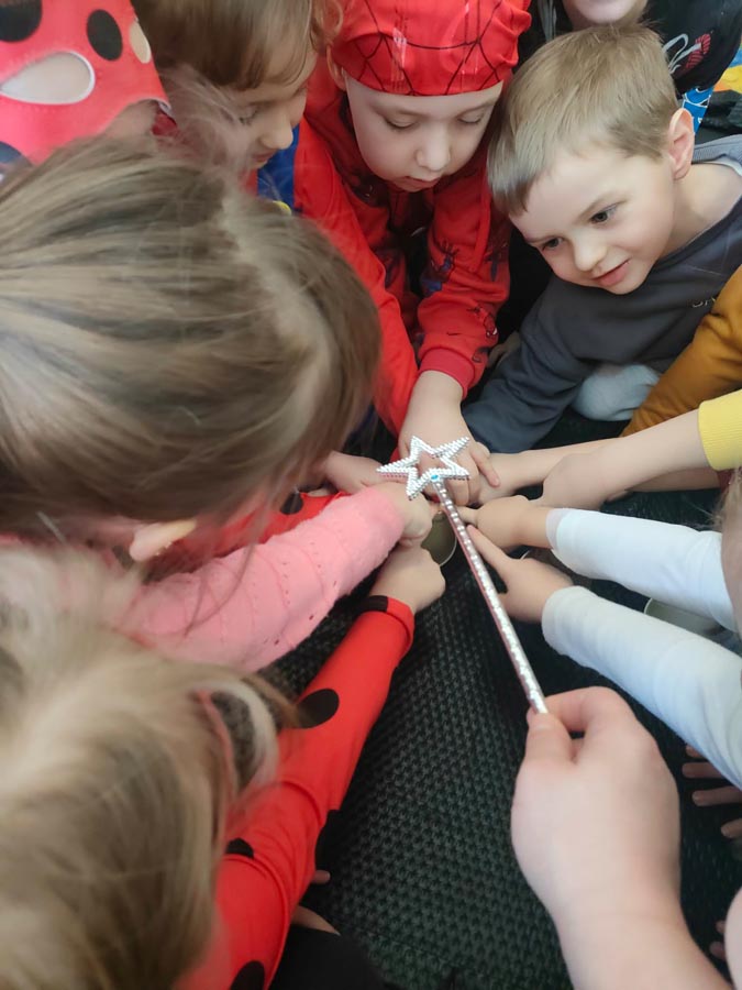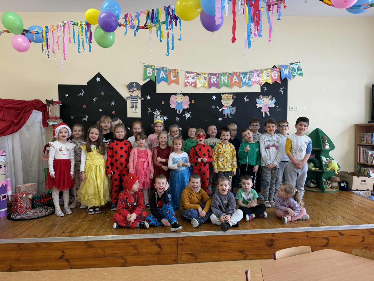 Na zakończenie naszą sale wypełniły bańki mydlane, a dzieci z zachwytem próbowały je łapać, przebijać i gonić. Unoszące się kolorowe kule dodały dla naszego balu jeszcze bardziej bajkowego charakteru i wywołały jeszcze więcej dziecięcej radości. To wyjątkowe wydarzenie po raz kolejny zintegrowało naszą społeczność i dostarczyło maluchom mnóstwo radości.