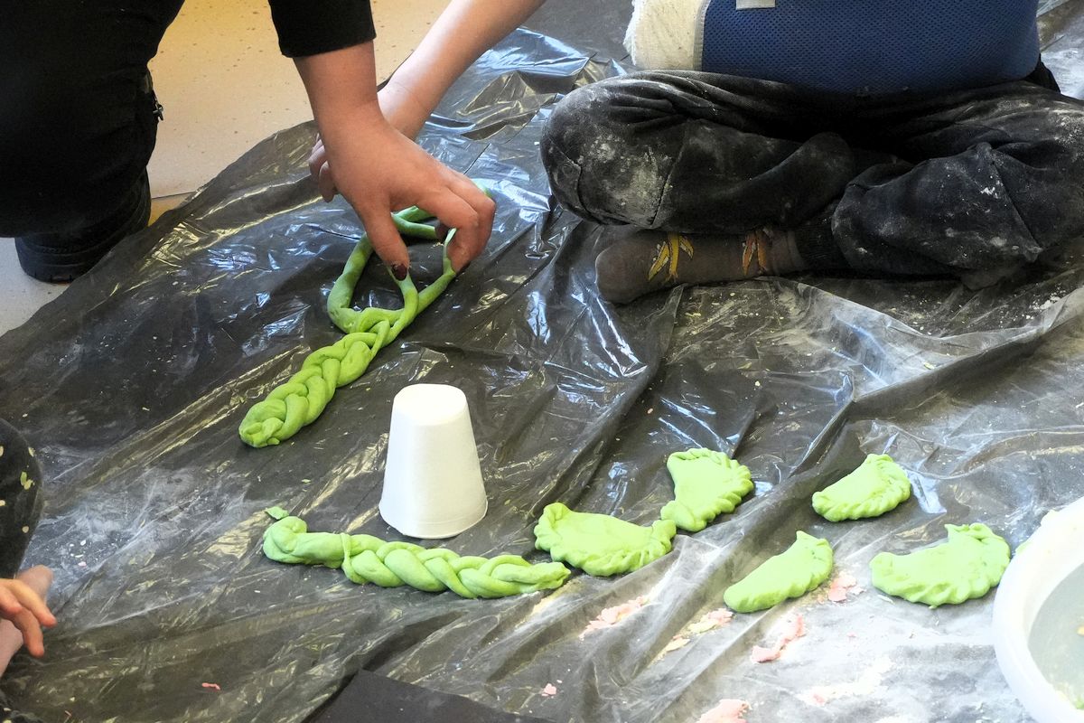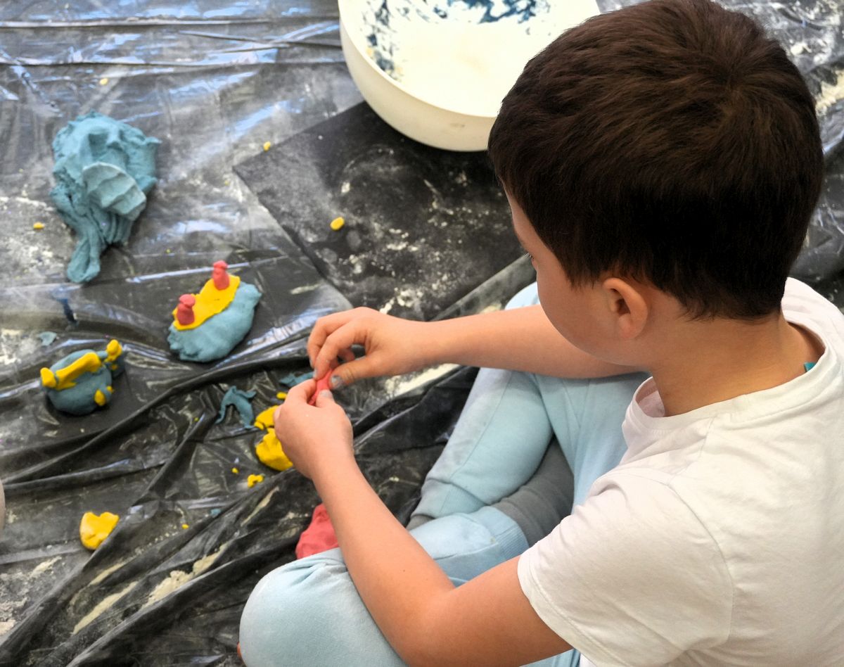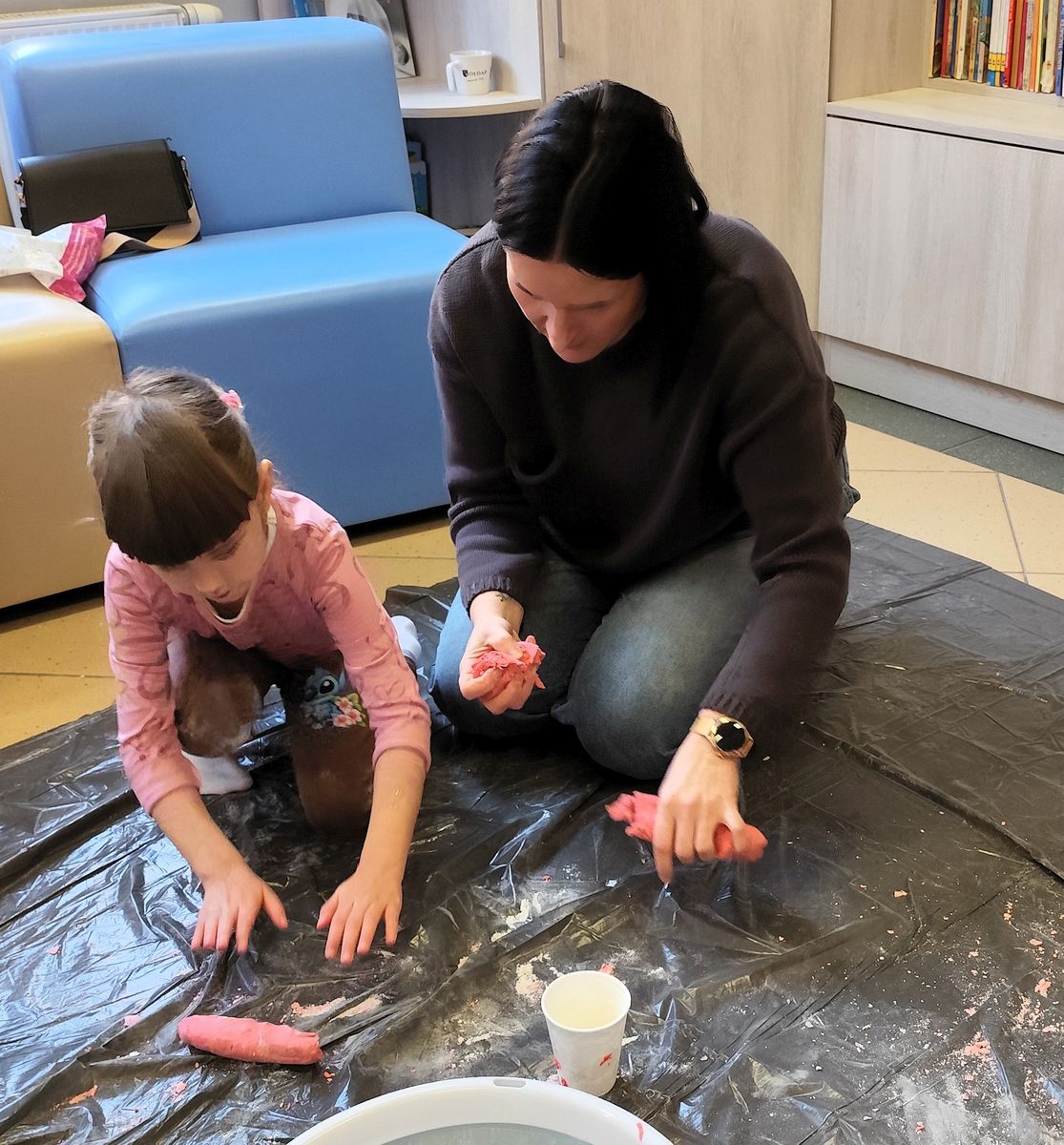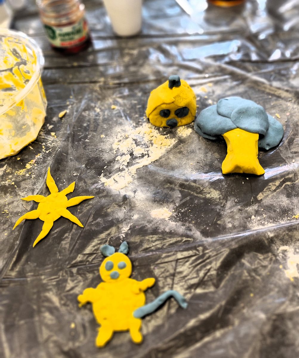 Wydarzenie rozpoczęliśmy opowieścią, która otworzyła drzwi do świata fantazji i stała się iskrą dla dalszych działań. Chwilę później małe dłonie zanurzyły się w kolorach, fakturach i miękkich materiałach, zamieniając słowa w obrazy i kształty.