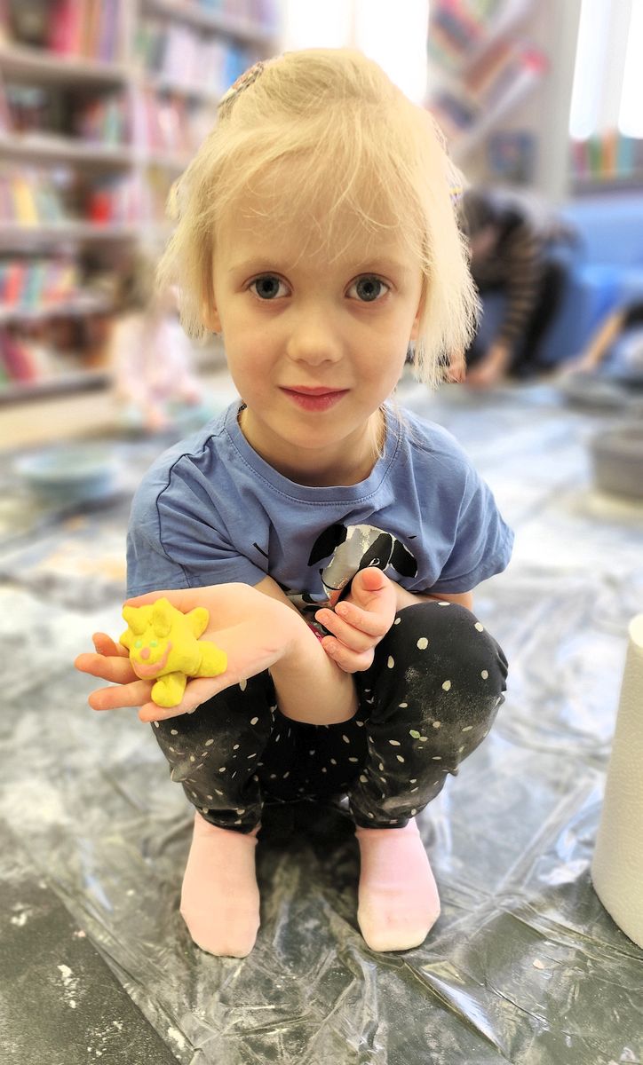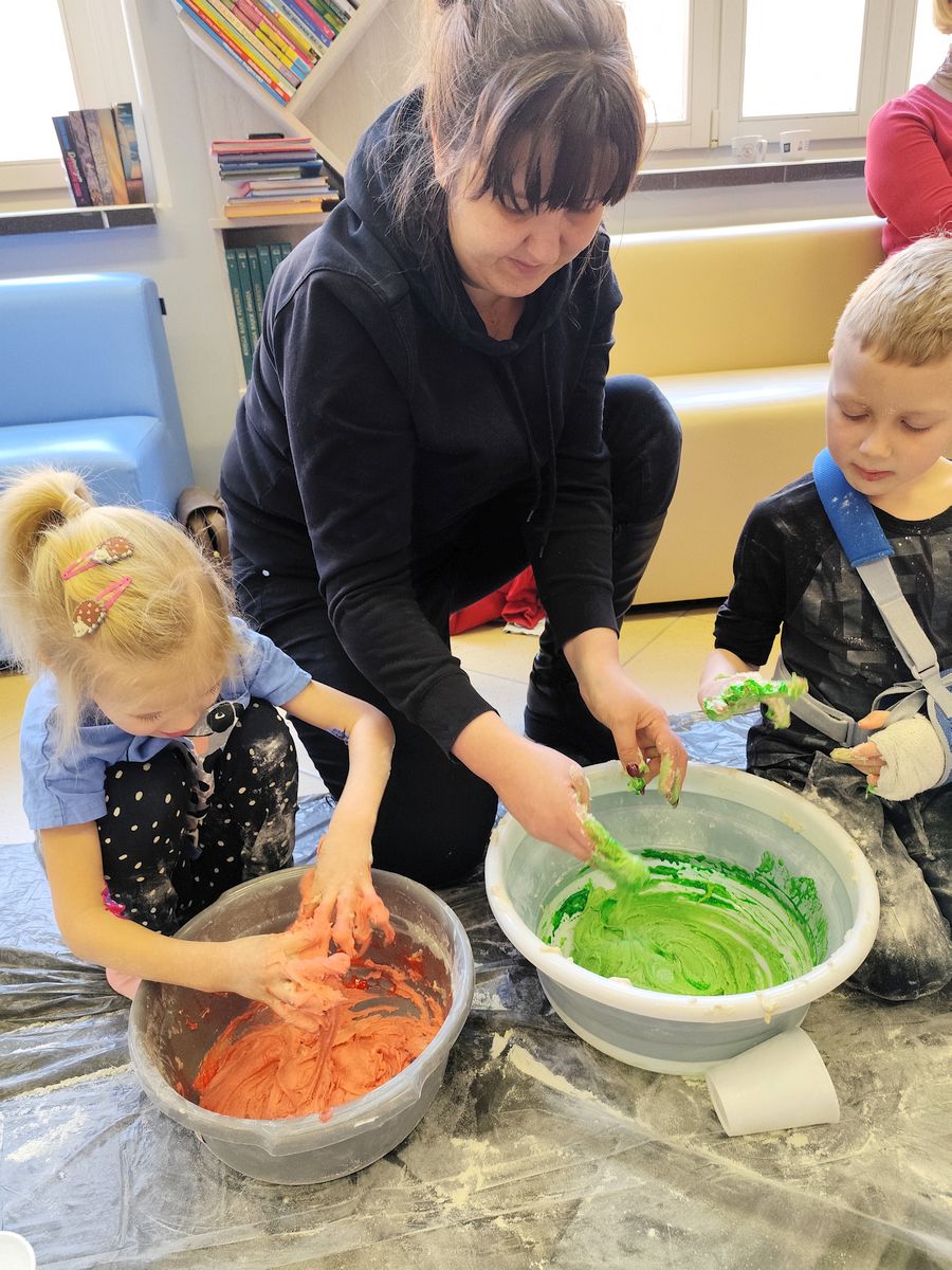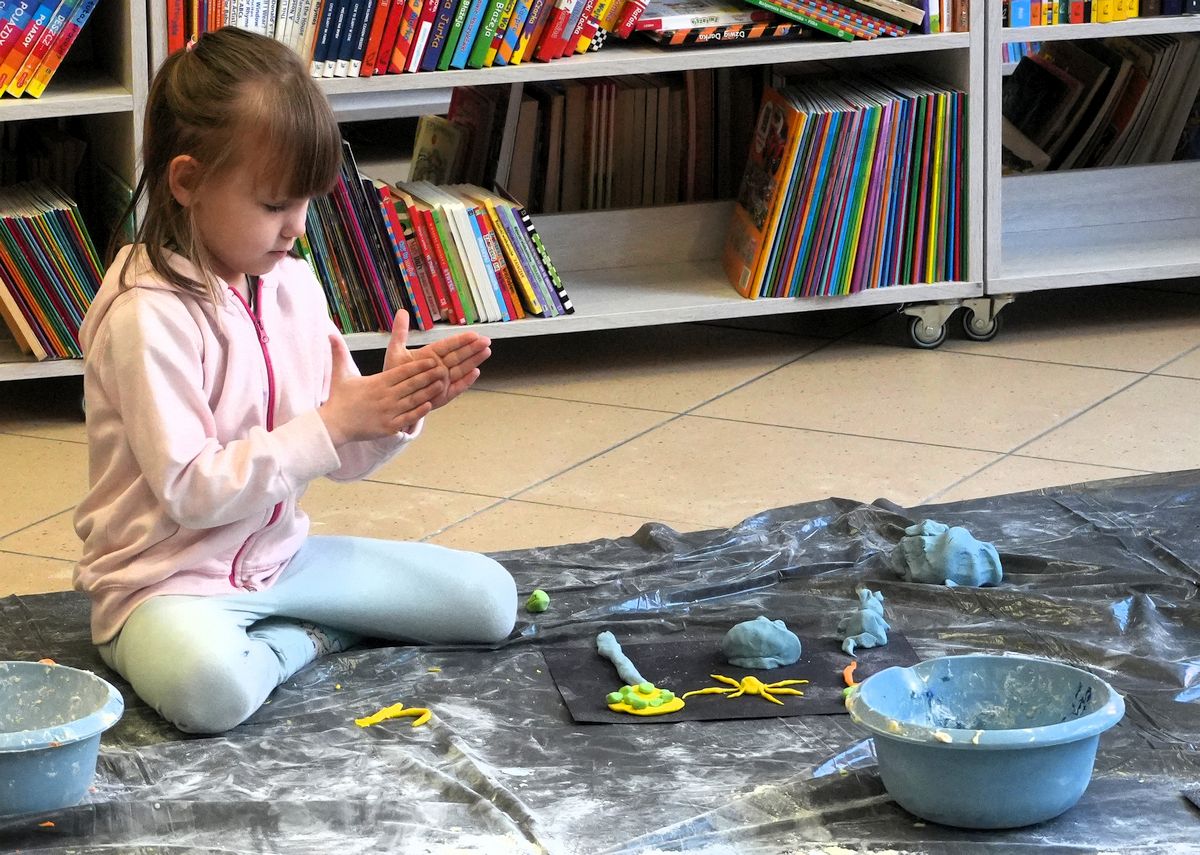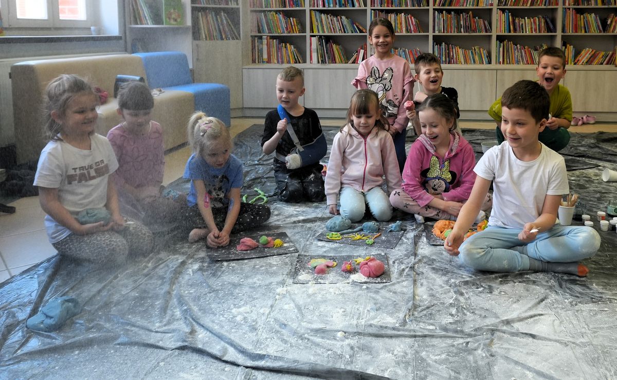 W ostatni dzień ferii Biblioteka Publiczna w Gołdapi wypełniła się dziecięcą wyobraźnią podczas warsztatów literacko-sensoplastycznych „Małe rączki, wielka wyobraźnia”. Na początku zajęć dzieci i ich opiekunów przywitała Agnieszka Dziobkowska dyrektor Biblioteki Publicznej, wprowadzając wszystkich w ciepłą i twórczą atmosferę spotkania.