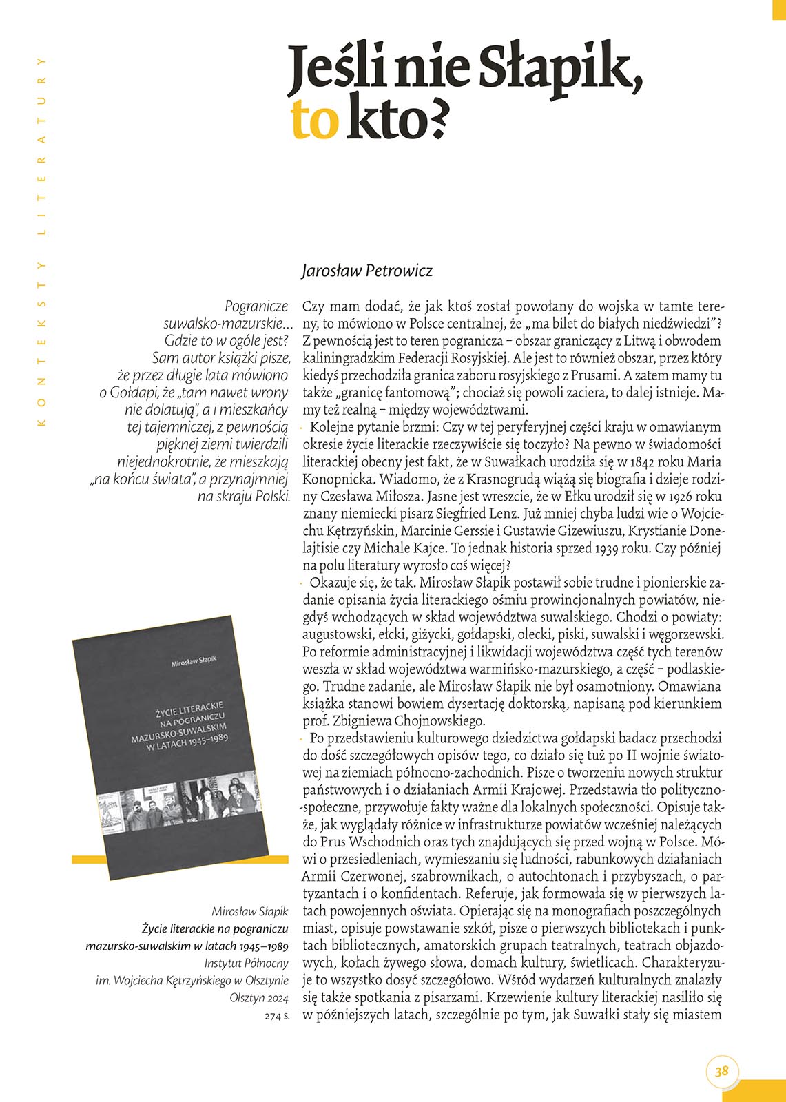 W najnowszym, grudniowym numerze „Nowych Książek” ukazała się recenzja książki Mirosława Słapika „Życie literackie na pograniczu mazursko-suwalskim w latach 1945–1989”. Autorem jest Jarosław Petrowicz.