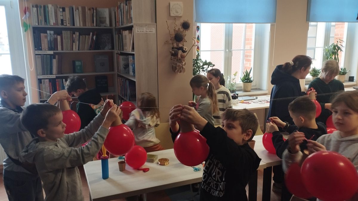 W tym samym czasie podczas „Ferii w bibliotece” dzieci brały udział w twórczych aktywnościach – wykonywały kolorowe bransoletki z gumek, przygotowywały zakładki do książek ozdabiane błyszczącymi brylancikami oraz programowały i bawiły się robotami Photon. Nie zabrakło także działań przyrodniczo-plastycznych – powstały witraże dla ptaków.