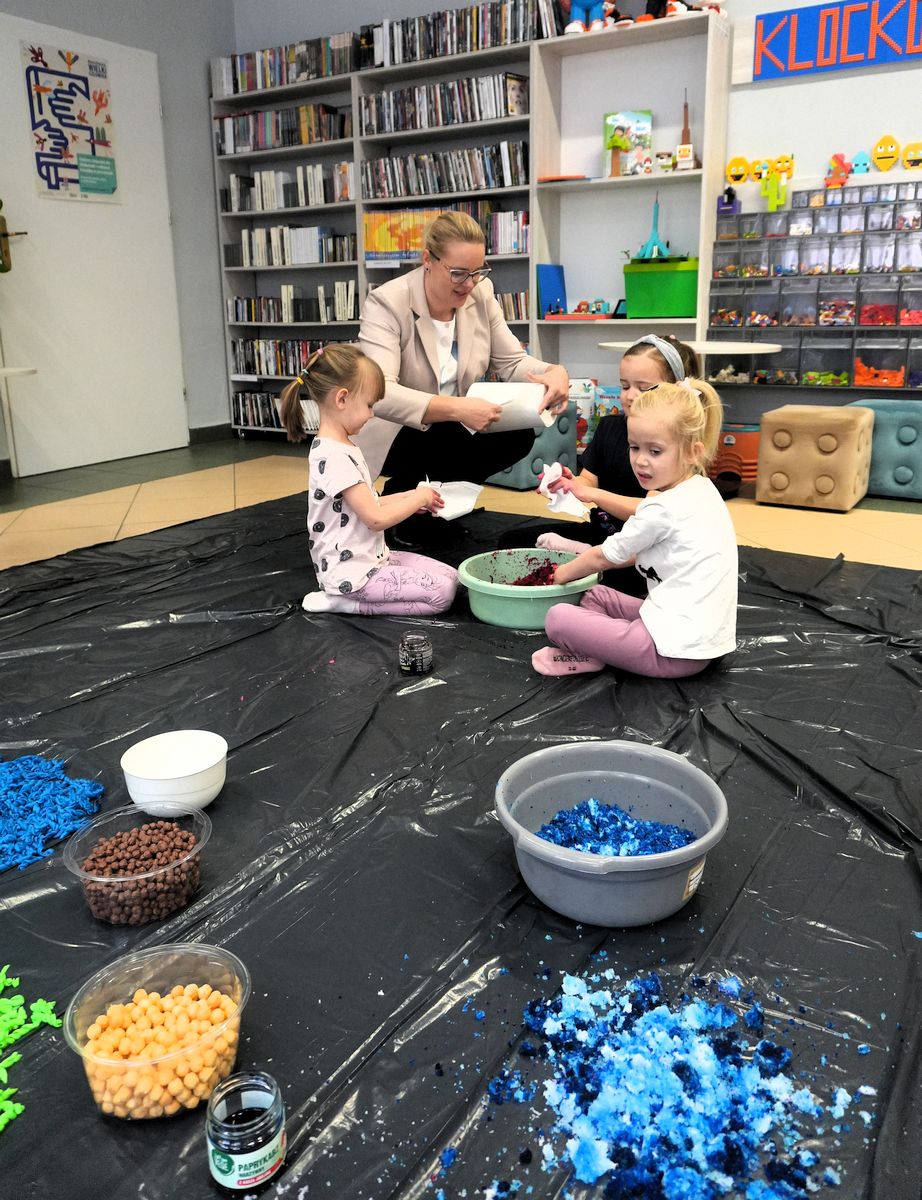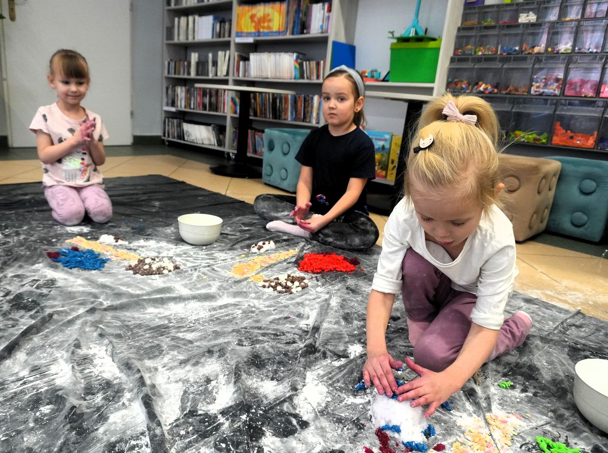 Za nami ostatni dzień pełen kreatywności i wspólnej zabawy – zarówno podczas „Zimowych poranków” jak i „Ferii w bibliotece” spędzanych w bibliotece. Każde spotkanie przynosiło dzieciom nowe doświadczenia i mnóstwo uśmiechu. Podczas „Zimowych poranków” uczestnicy warsztatów sensoplastycznych tworzyli obrazy do bajki o „Misiu Śniegulku”, swobodnie eksperymentując z różnorodnymi materiałami, rozwijając wyobraźnię, zmysły i sprawność manualną. Ogromnym zainteresowaniem cieszyło się również interaktywne auto, które zachęcało do ruchu, odkrywania i wspólnej zabawy.