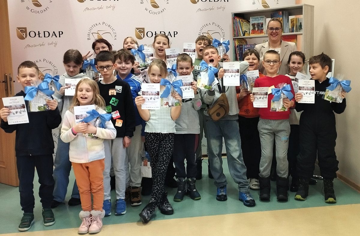 Na zakończenie zimowych spotkań wszystkie dzieci otrzymały drobne upominki, które wręczyła Agnieszka Dziobkowska, dyrektor Biblioteki Publicznej w Gołdapi. Dziękujemy za wspólnie spędzony czas, wspaniałą atmosferę i ogromne zaangażowanie naszymi działaniami podczas ferie i zimowych poranków!