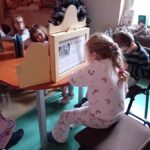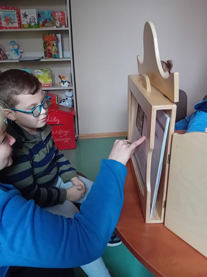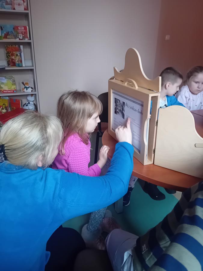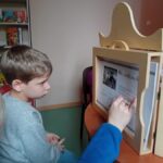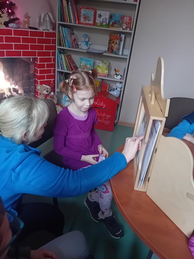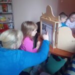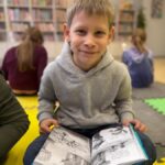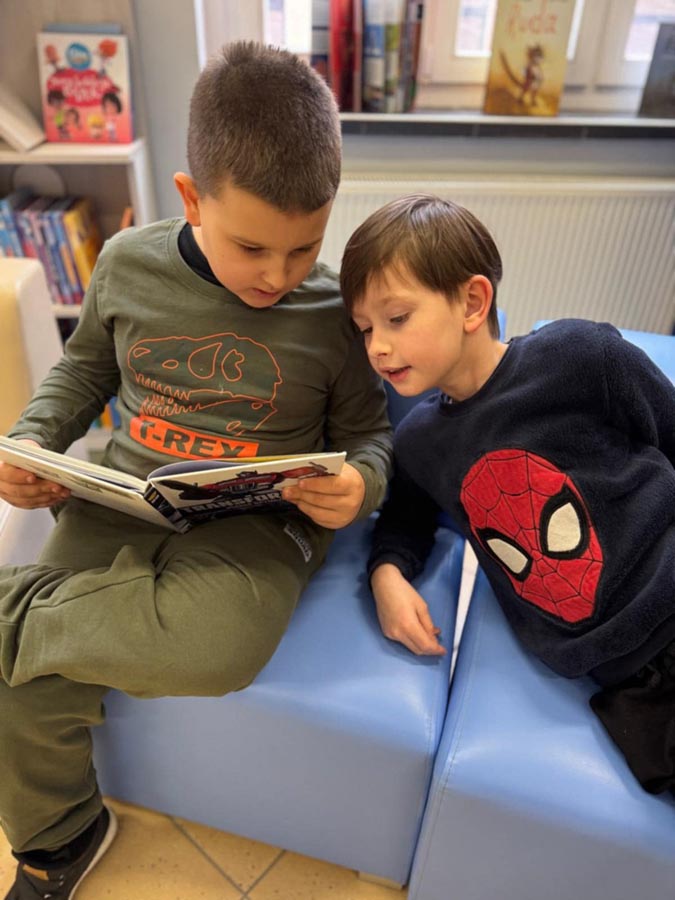 Za nami już dwie wizyty, podczas których dzieci zdążyły zapoznać się z bibliotecznymi zbiorami. Pierwszoklasiści z zaangażowaniem przeglądali nowości wydawnicze i wspólnie czytali wybrane opowieści. Wyjątkowym punktem programu był teatrzyk Kamishibai – japońska technika ilustrowanego opowiadania bajek zachwyciła młodych widzów i pozwoliła im przenieść się w świat wyobraźni.
