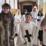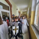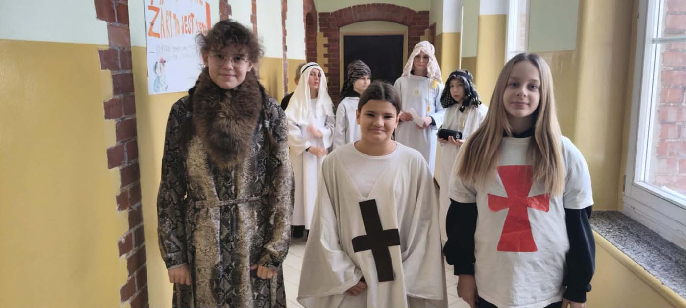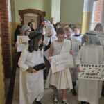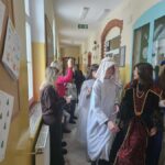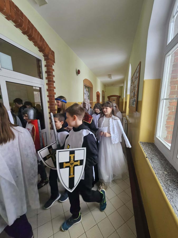 Zwieńczeniem obchodów w tym dniu była parada korytarzami naszej szkoły. Uczniowie przebrani za postacie z powieści H. Sienkiewicza, w rytm muzyki z filmów spacerowali i rozdawali ciekawostki o naszym Nobliście.