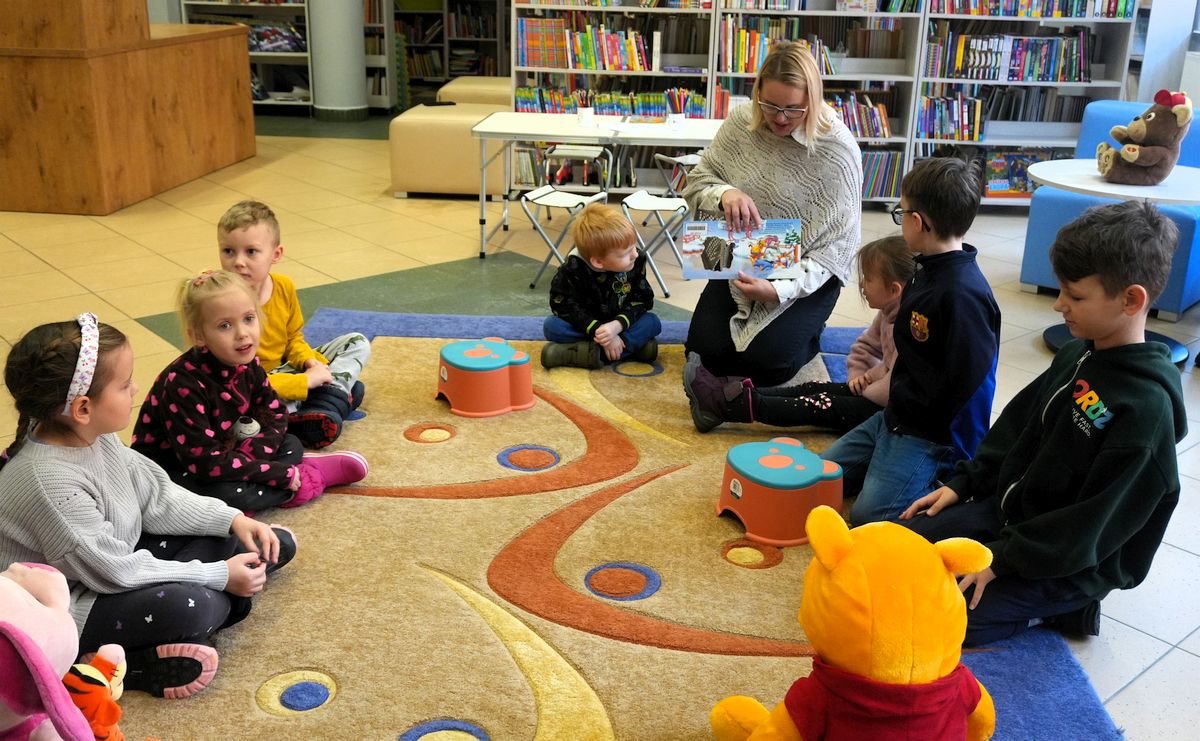 Pani dyrektor Biblioteki Publicznej w Gołdapi zaprezentowała dzieciom opowieść „Śnieżny dzień”, wprowadzając najmłodszych w zimowy nastrój. Uczestnicy poznali także Kubusia Puchatka i wzięli udział w „puchatkowych” aktywnościach, które rozwijały wyobraźnię, kreatywność oraz umiejętność współpracy. Całość dopełniły gry i zabawy, dając dzieciom mnóstwo radości oraz okazję do wspólnego, rodzinnego spędzenia czasu z literaturą w tle.