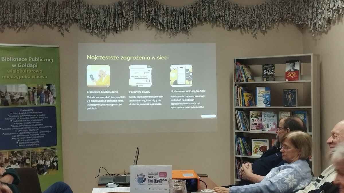 W Bibliotece Publicznej w Gołdapi zakończyliśmy cykl spotkań w ramach Dnia Bezpiecznego Internetu (BDI) w których wzięli udział: seniorzy, dwie grupy uczniów z Zespołu Placówek Edukacyjno -Wychowawczych w Gołdapi.
