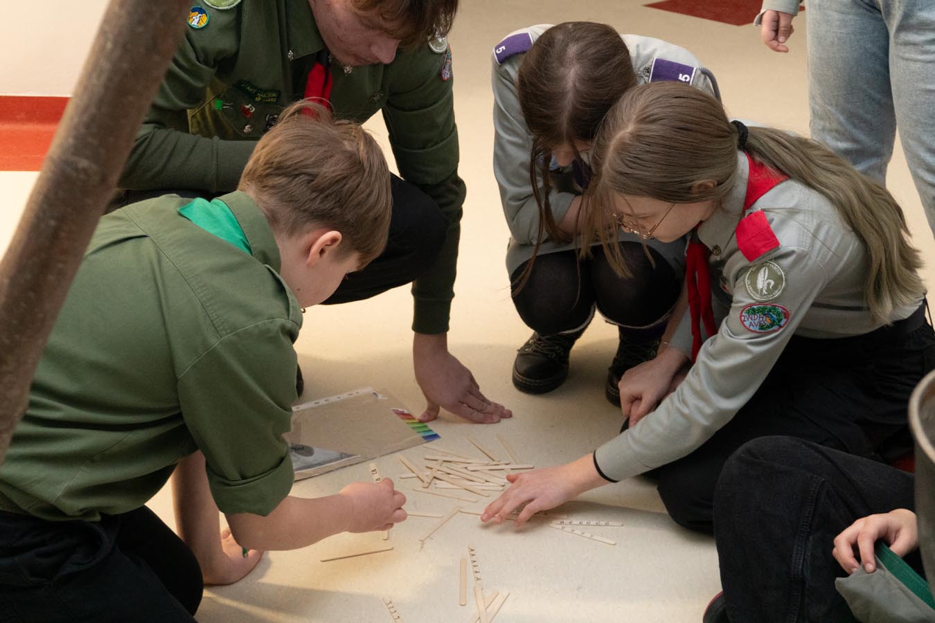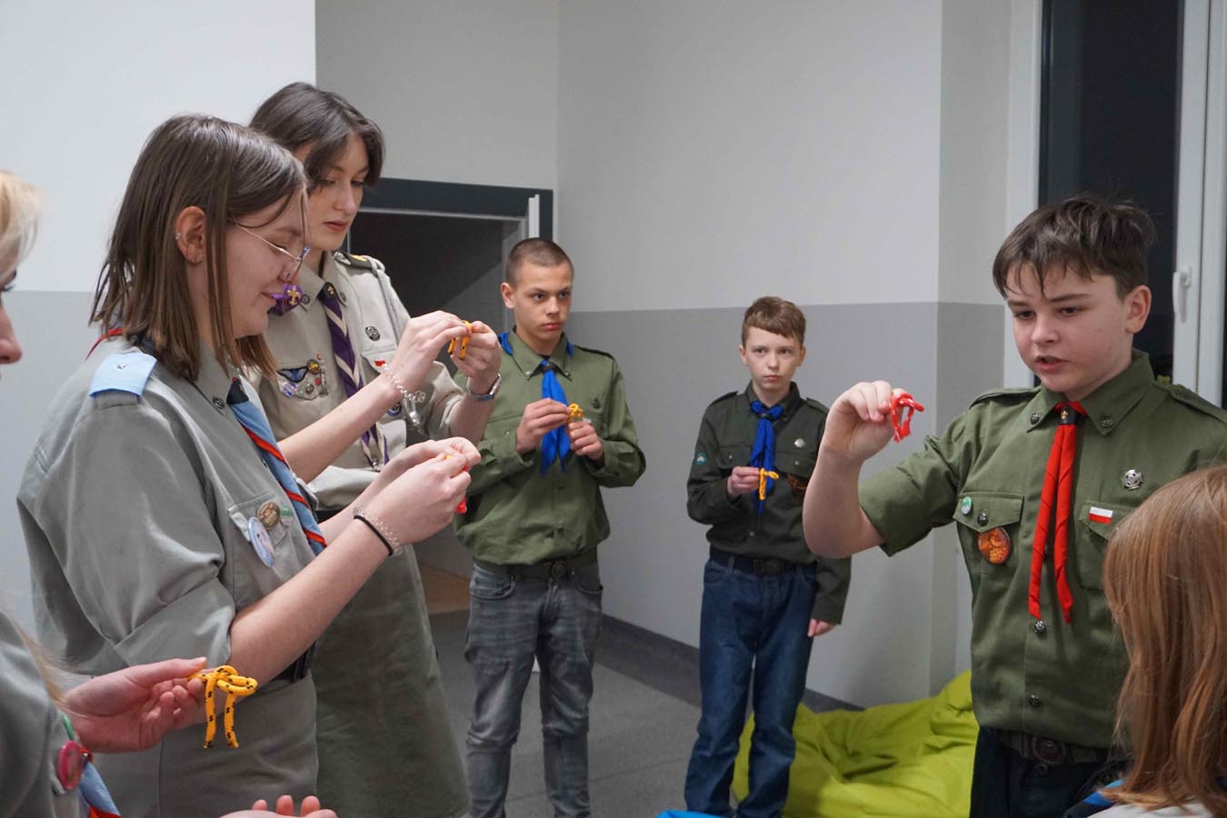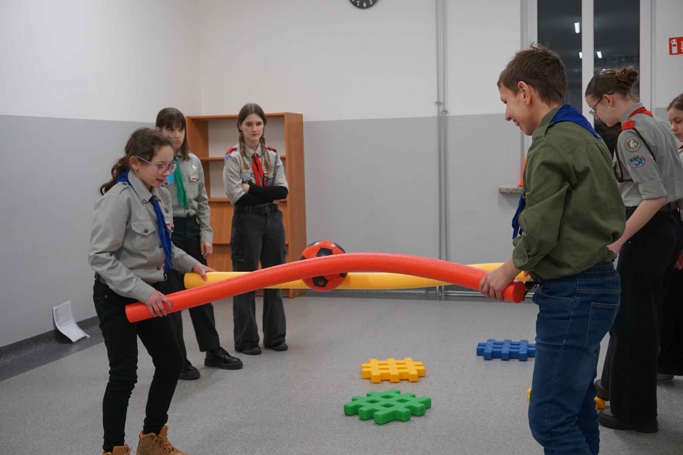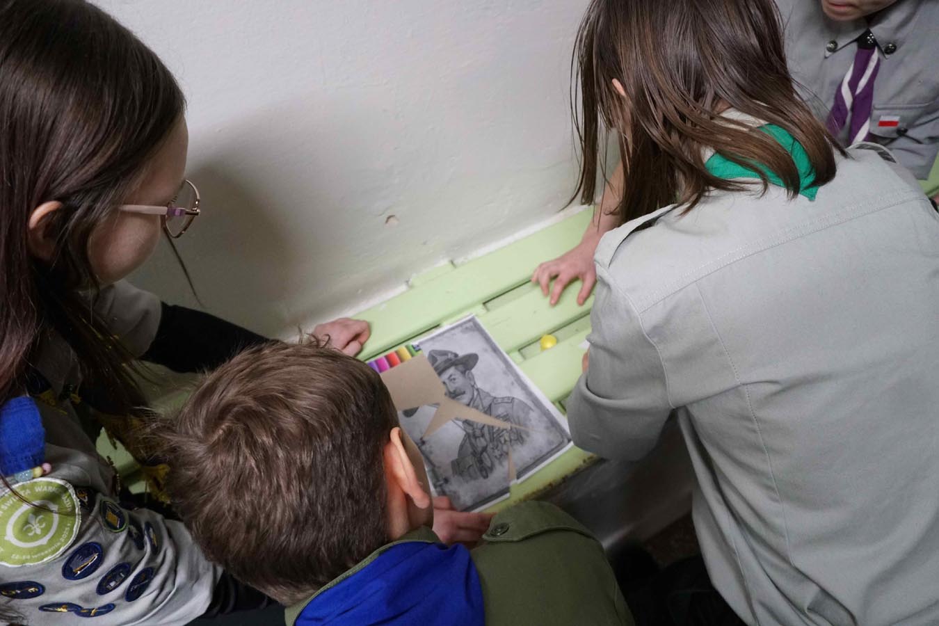 Kolejnym punktem uroczystości była gra tematyczna integrująca harcerzy z różnych środowisk oraz sprawdzająca ich wiedzę o twórcy skautingu i umiejętności z zakresu pierwszej pomocy, wiązania węzłów… Patrole harcerskie i zuchowe przemierzały szkolne korytarze, realizując zadania na punktach kontrolnych. Na zakończenie, z otrzymanych elementów, układały pamiątkową kartę do kroniki z wizerunkiem „Bi-Pi”. W stołówce czekał na uczestników słodki poczęstunek.