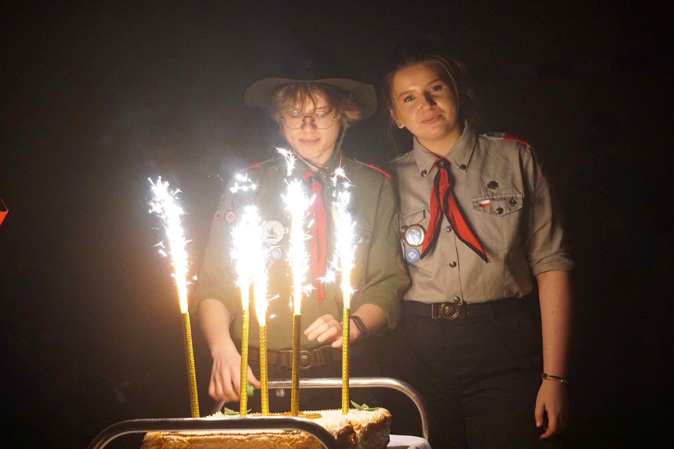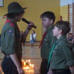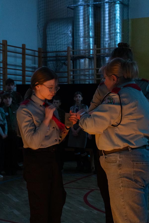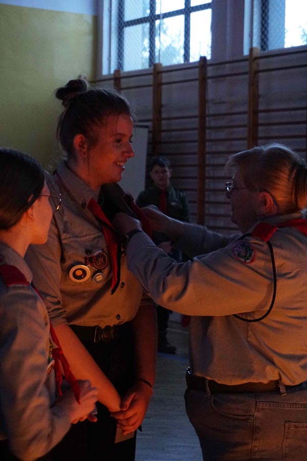 Podczas świeczkowiska Natalia i Sandra złożyły Przyrzeczenie Harcerskie, zwieńczając tym samym kilkumiesięczne zaangażowanie w pracę drużyny oraz poznawanie ideałów harcerstwa.