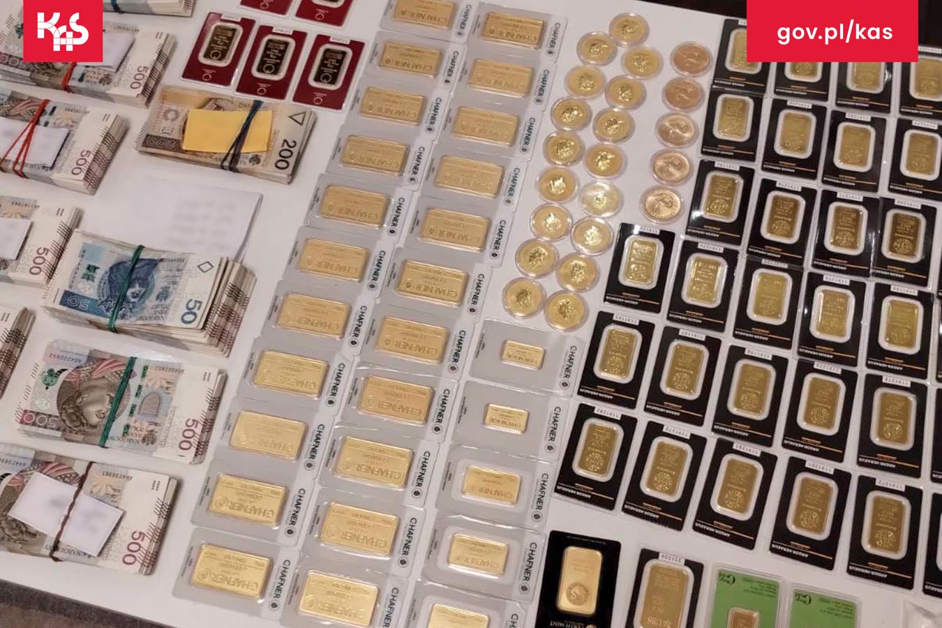 Zabezpieczono środki pieniężne, złoto inwestycyjne, numizmaty oraz biżuterię.