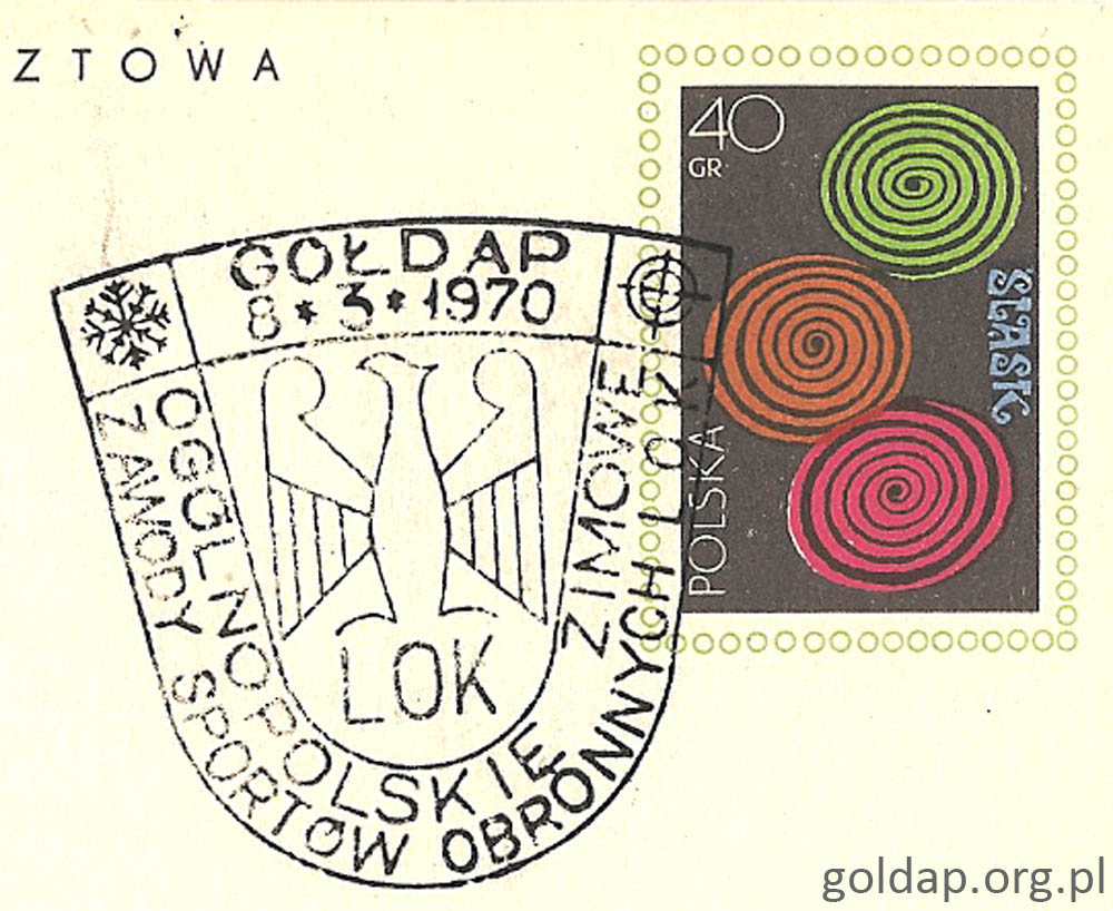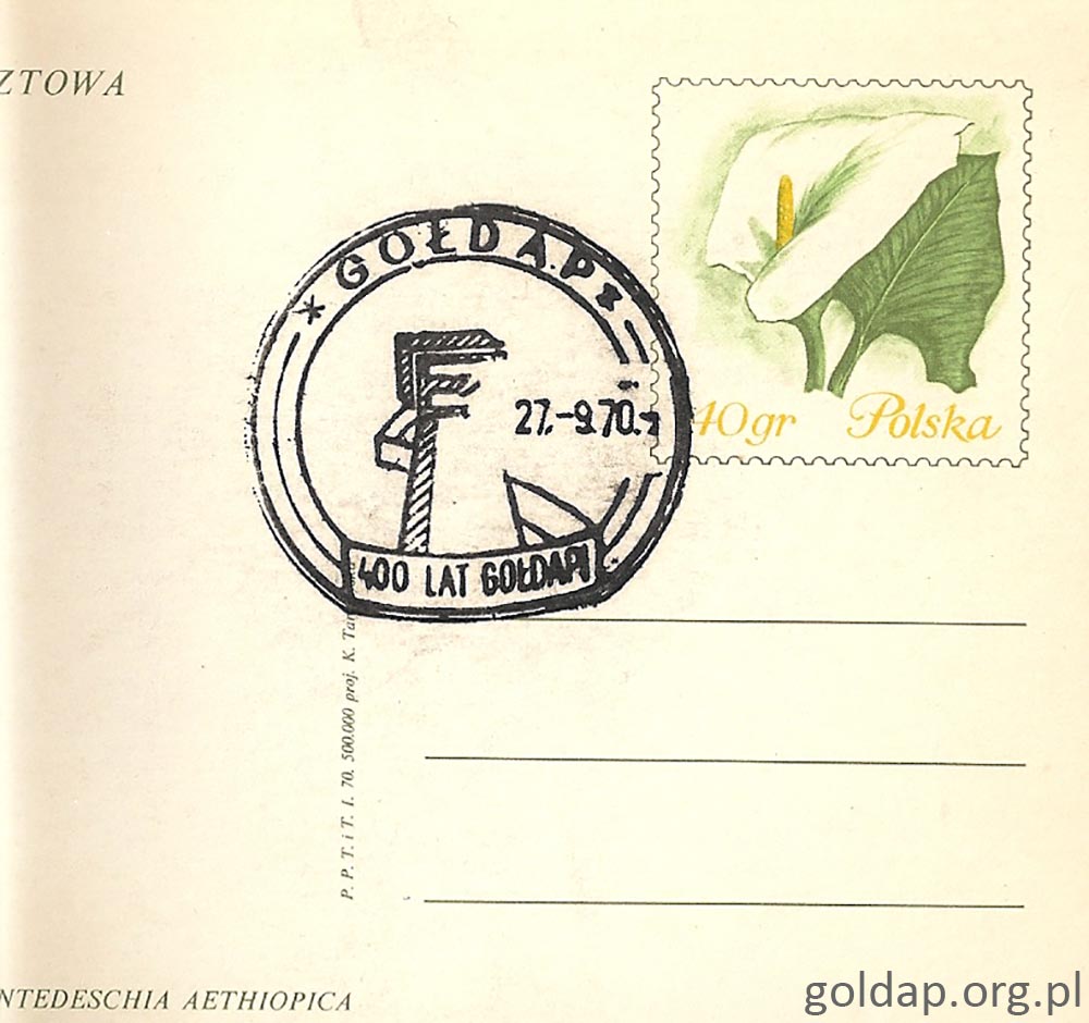 W Gołdapi ukazało się kilka pieczęci okolicznościowych związanych z wydarzeniami sportowymi i czterechsetleciem miasta. Kilka z nich zachowali – Tadeusz Brzeziński i animator sportu Lech Iwanowski (obaj odeszli przed laty).