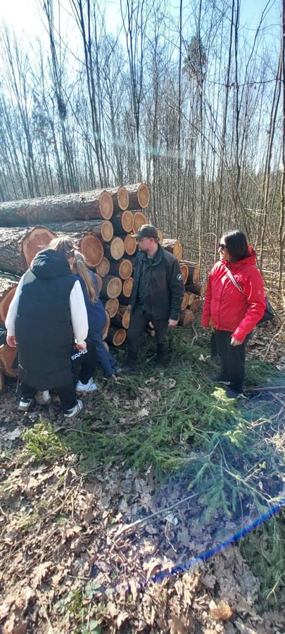 Podczas wizyty uczniowie spotkali się z podleśniczym Patrykiem Bowszysem z Nadleśnictwa Borki, który w przystępny i interesujący sposób przybliżył im specyfikę swojej pracy oraz zasady funkcjonowania gospodarki leśnej. Uczestnicy zajęć mieli okazję dowiedzieć się, jak istotną rolę odgrywa człowiek w kształtowaniu i ochronie środowiska leśnego.