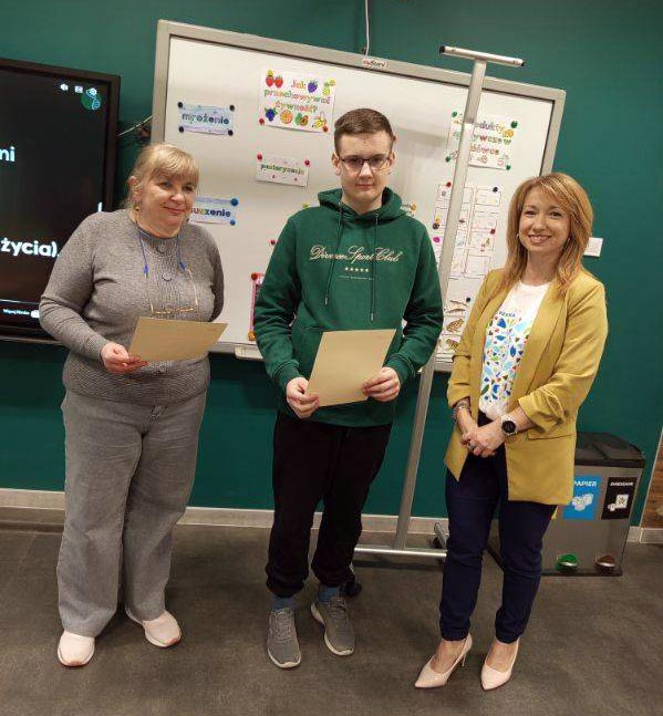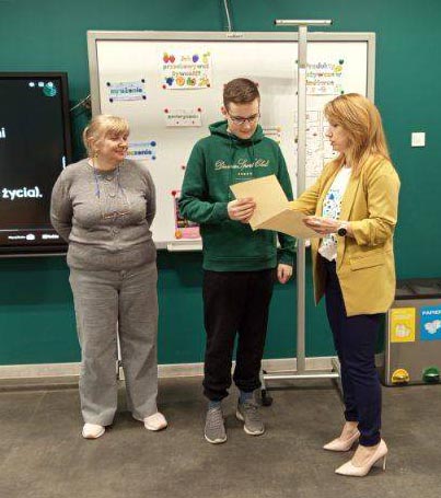 24 kwietnia podczas uroczystego spotkania dyrektor szkoły, Iwona Poreda, wręczyła Pawłowi oficjalne zaświadczenie potwierdzające zdobycie tytułu laureata oraz złożyła serdeczne gratulacje.