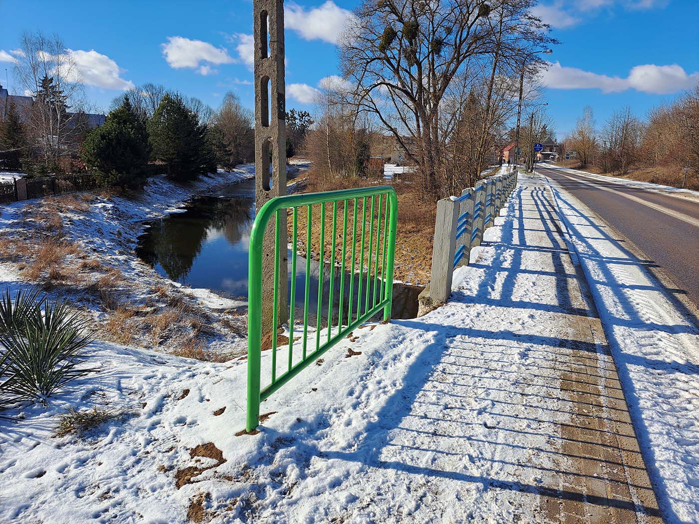 Przed kilkoma tygodniami pisaliśmy o niebezpiecznym odcinku chodnika przed mostem na Kolejowej i potrzebie umieszczenia w tym miejscu barierki. Barierka już jest, za co dziękujemy zarządcy tej drogi.